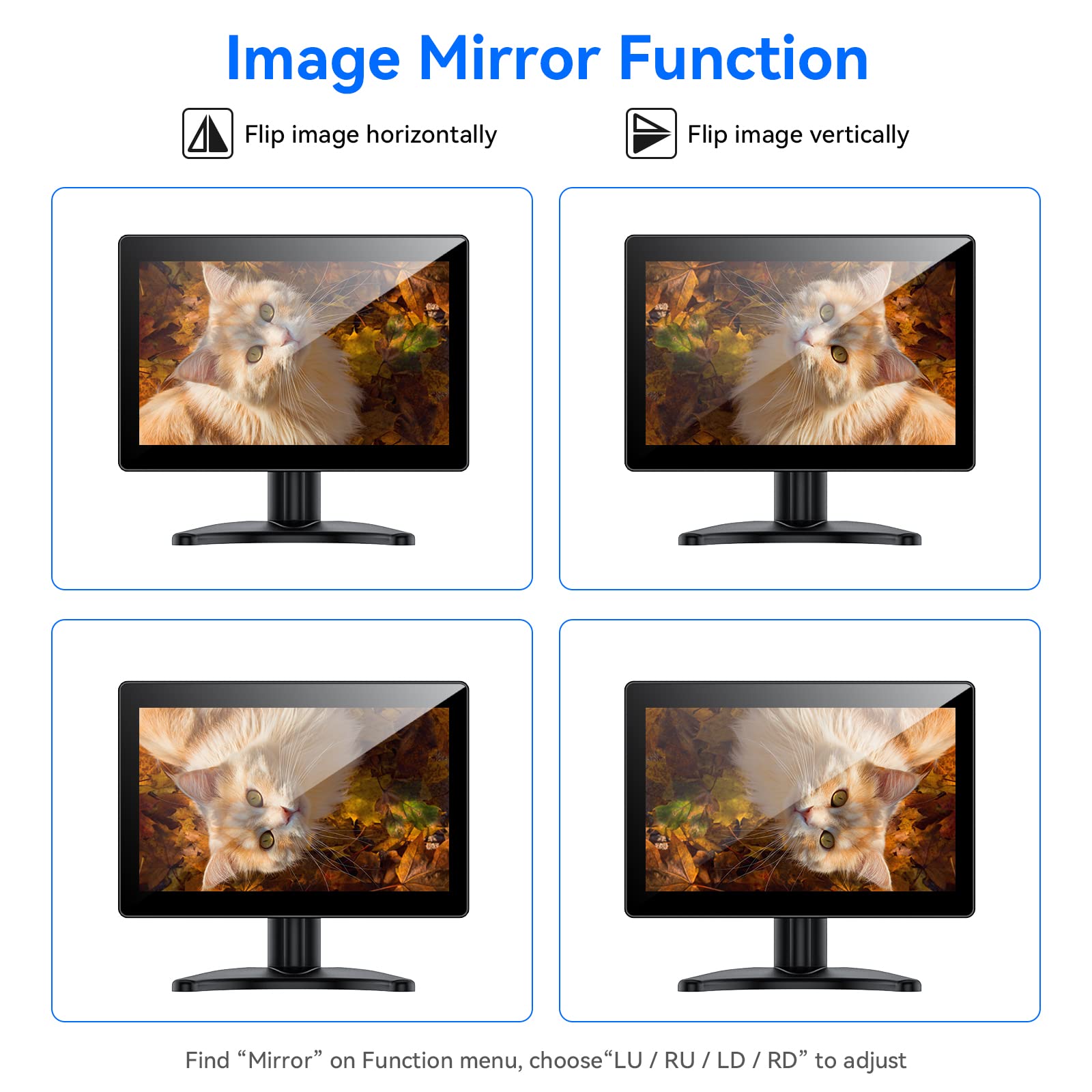 • IMAGE MIRROR FUNCTION: This touchscreen monitor offers a image mirror function that can be adjusted both vertically and horizontally. It's the perfect fit for diverse applications, enhancing your teleprompter experience, streamlining operations as a POS system, optimizing printer monitoring, and integrating seamlessly into home automation systems.