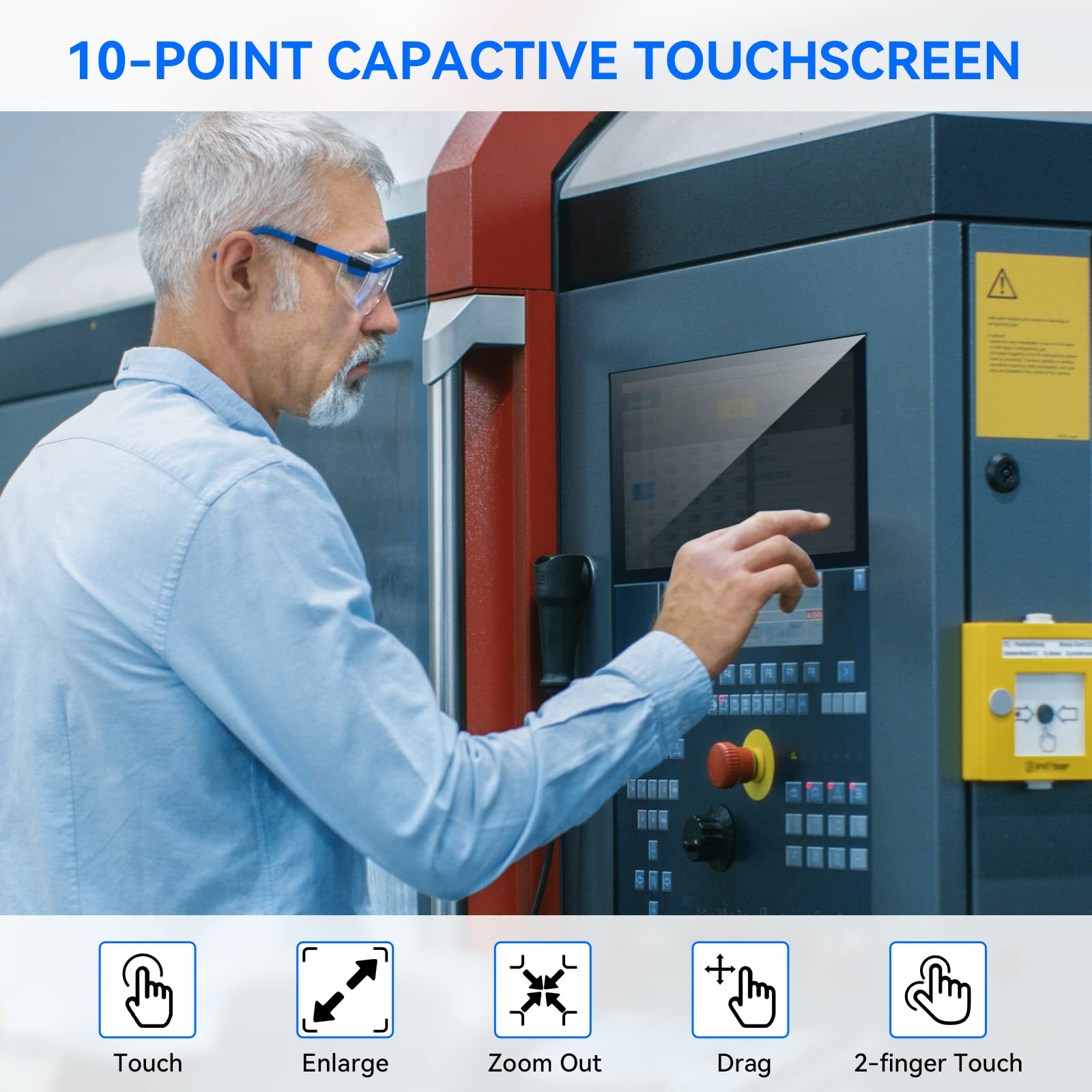 • METAL HOUSING DESIGN: This touch sreen monitor is engineered with a eco-friendly metal housing that's built to last. This design ensures superior protection against the harsh conditions typically found in industrial settings, safeguarding the display from damage and ensuring long-term reliability.
