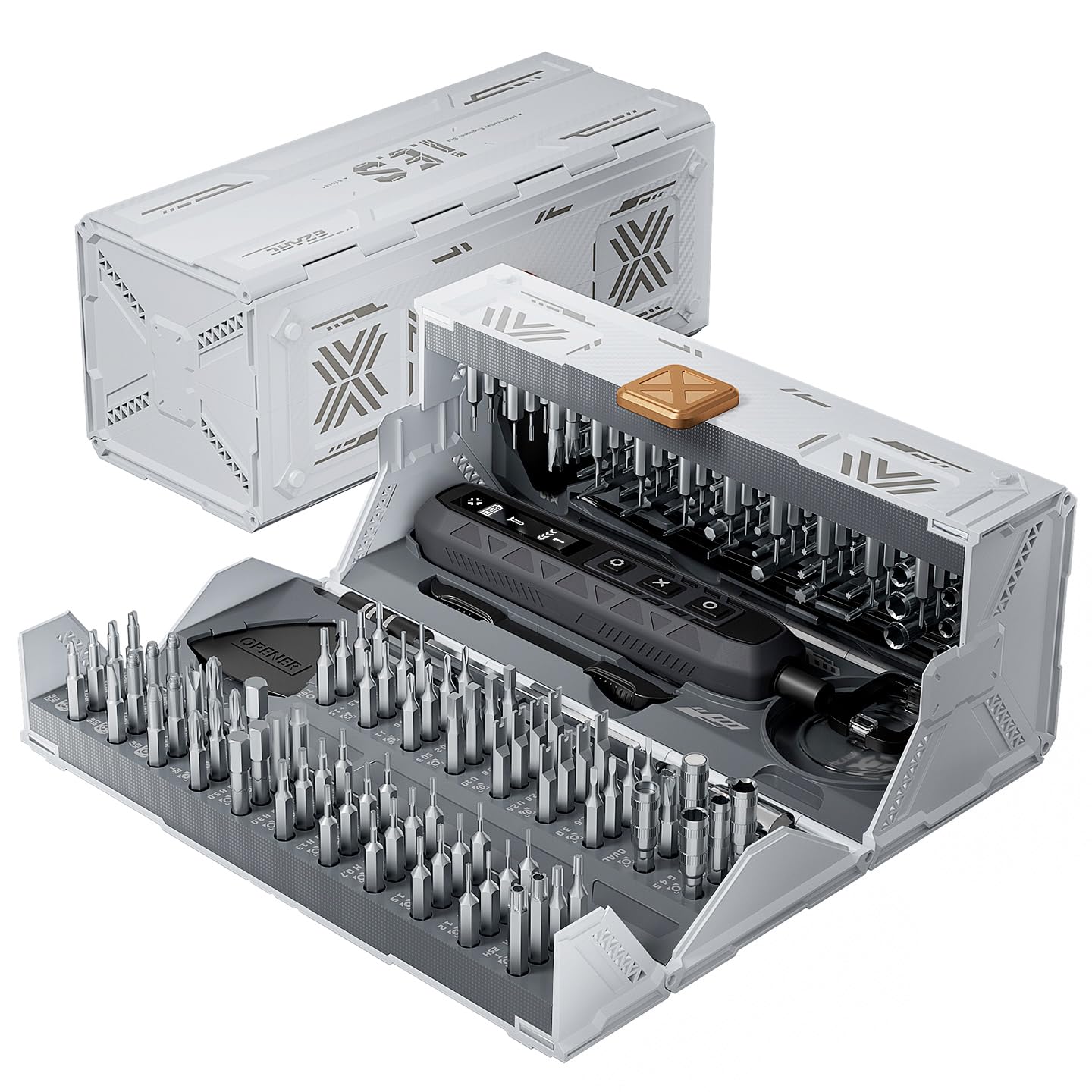 • 【Electric Precision Screwdriver Kit】With inspired by space stations, this electric screwdriver set offers a unique flip-cover for a sense of ceremony. Inside, the neatly arranged magnetic screw bits and versatile tools make it perfect for both daily precision maintenance and complex repairs.
