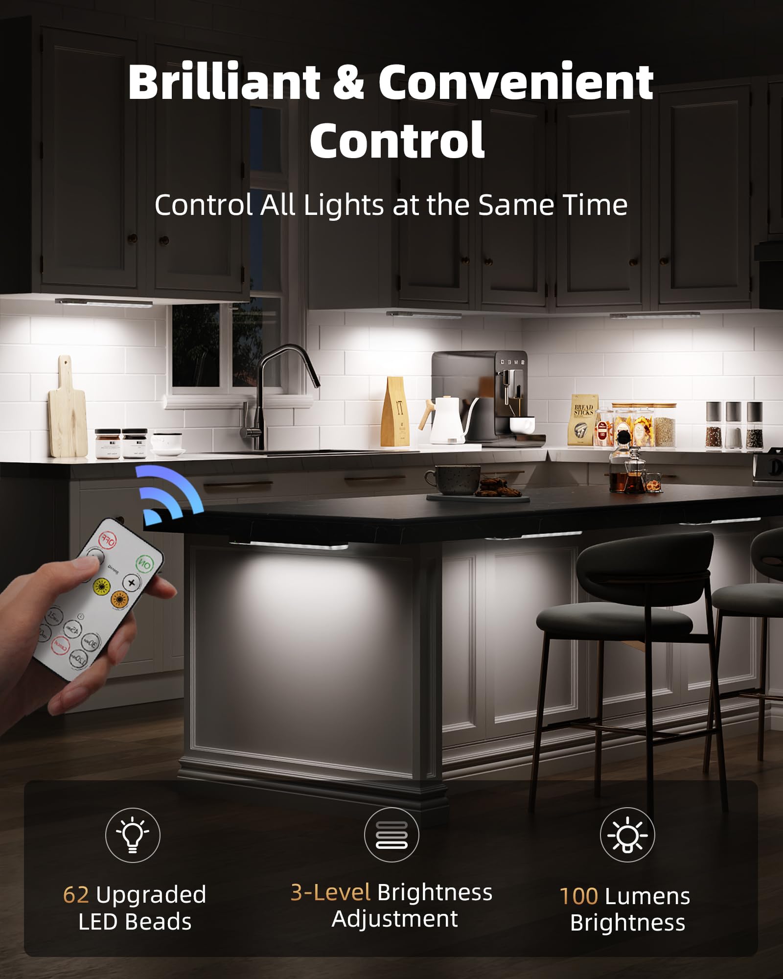 EZVALO 6-Pack Under Cabinet Lighting with Charging Station, 2000mAh Rechargeable Wireless Motion Sensor Lights, 3 Color Temps, Dimmable, Timer, Magnetic, with Remote Control for Kitchen, Closet, Stair