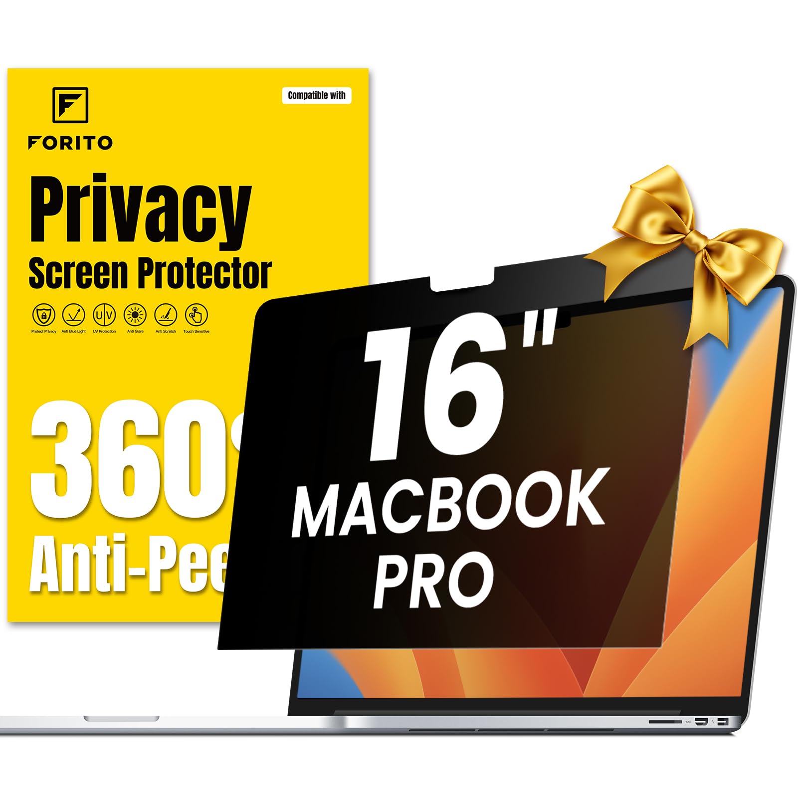 F FORITO 360° Privacy Screen Protector Compatible with MacBook Pro 16 inch (2024, 2023, 2022, 2021, M4, M3, M2, M1, Pro, Max), Anti Peeping Anti Glare Anti Blue Light Laptop Privacy Screen Shield