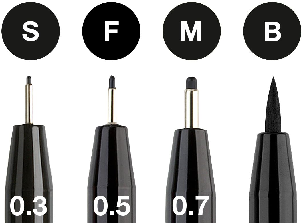 • 4 PITT ARTIST PENS - Features 4 Black Pitt Pens in a variety of nib styles, perfect for a variety of art applications. Includes S (Superfine .3mm), F (Fine .5mm), M (Medium .7mm) and B (Brush 1-5mm) artist markers