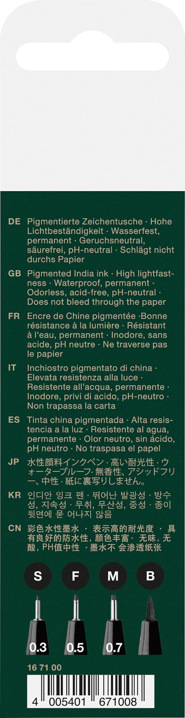 • PREMIUM QUALITY INK - Faber-Castell Pitt Pens feature the very best quality India Ink ink that is highly pigmented, lightfast, water and smudge resistant, permanent, odor free, acid-free and pH neutral