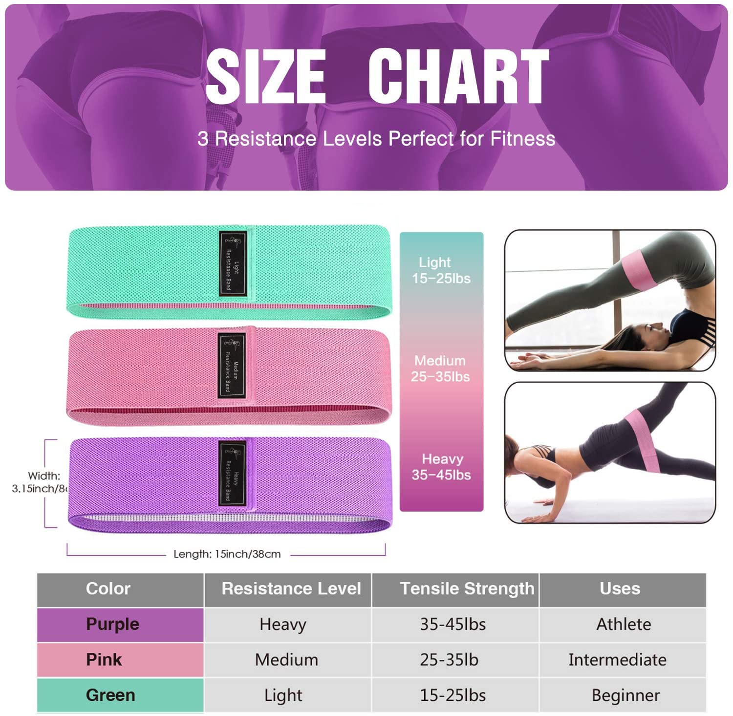 • 3 Strength Levels Resistance Bands: These exercise bands are suitable for beginners and professionals to effectively exercise the legs and butt. Light resistance (14~25lbs), Medium resistance (25~35lbs), and Heavy resistance (40~50lbs)