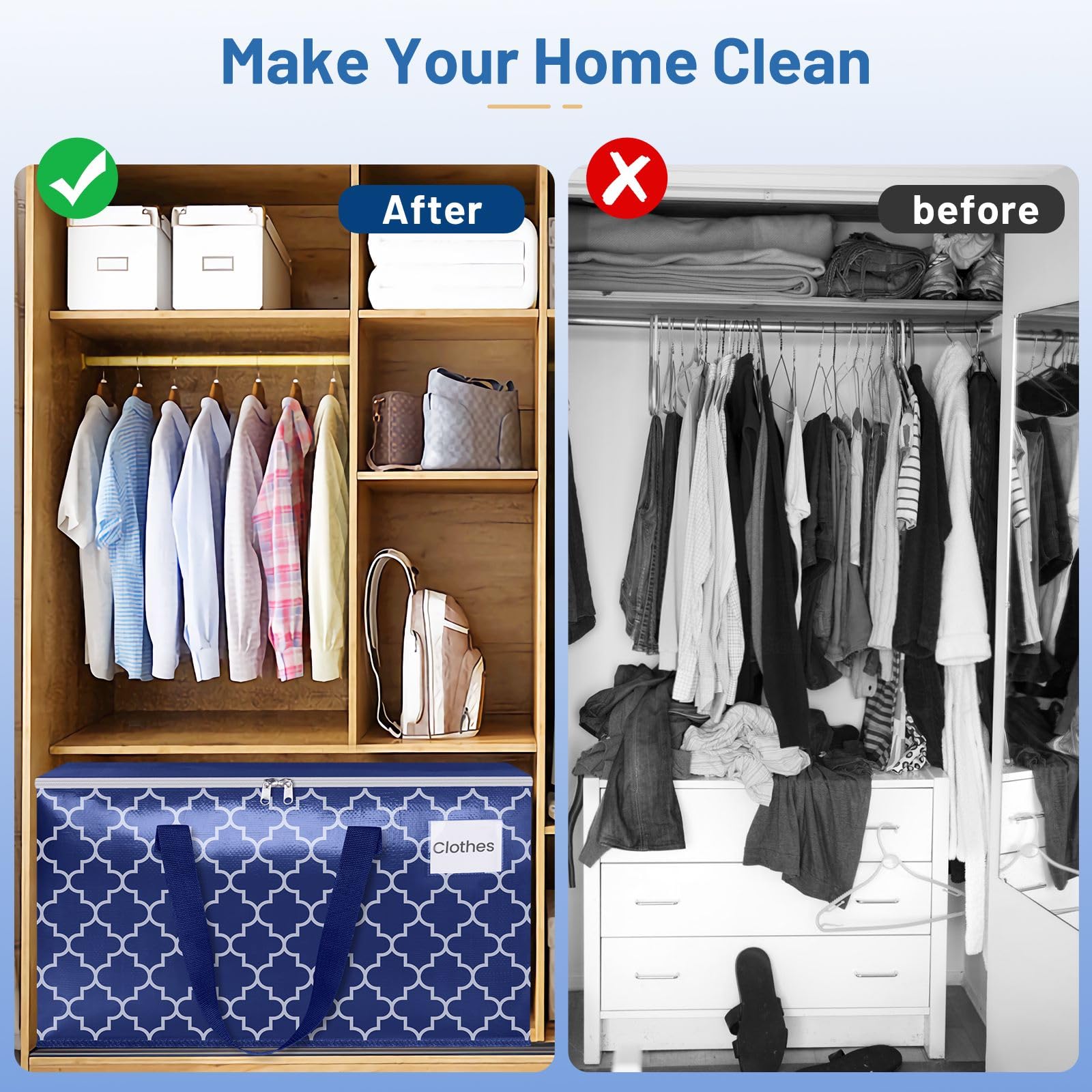 • [Extra Large Capacity] 28.74''*13.78''*13.58''. The extra-large capacity of these moving totes can meet various needs of customers. Ideal for moving, traveling, bedding, storage, organization. Home and college dorm room essentials. They can hold most types of items, such as clothing, office supplies, toys, shoes, pillows, towels, etc.