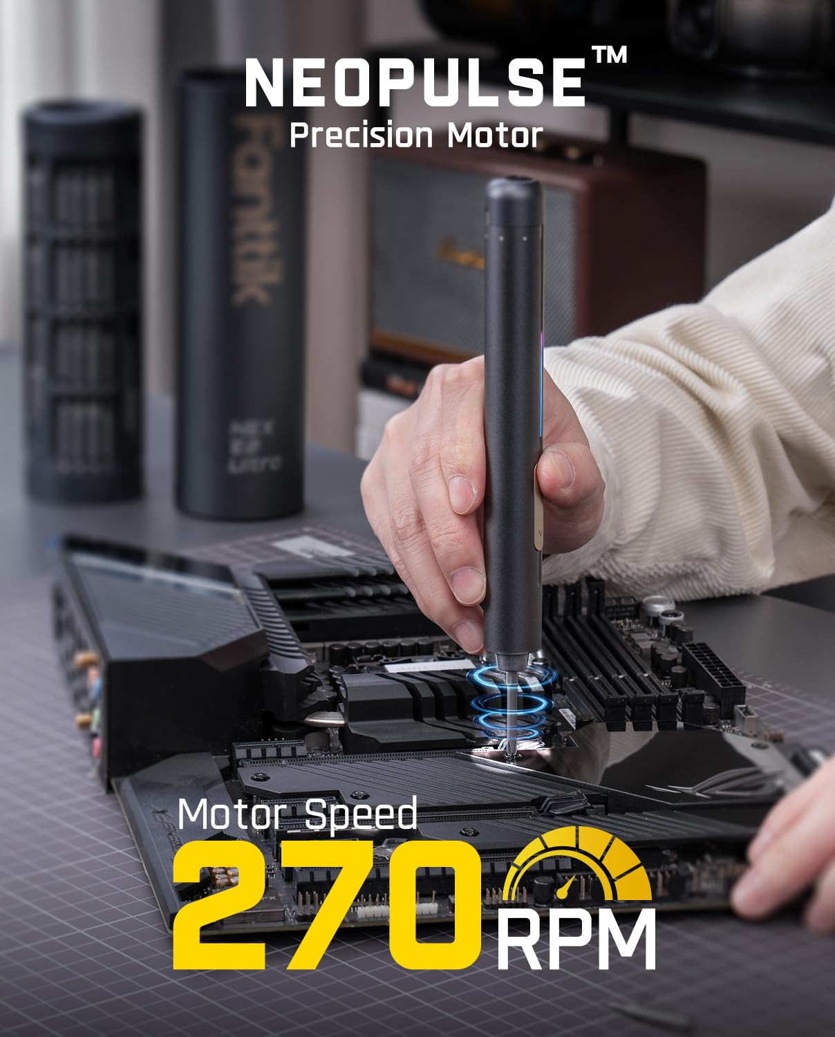 • Powerful Torque, Precise Control: With up to 0.6N.m torque and a 270RPM NeoPulse motor, the Fanttik E2 Ultra makes precision repairs effortless. 5 gears torque adjustment (0.05/0.1/0.2/0.4/0.6N.m) ensures quick and precise assembly without damaging delicate devices. Perfect for tablets, phones, watches, laptops, and small appliances.