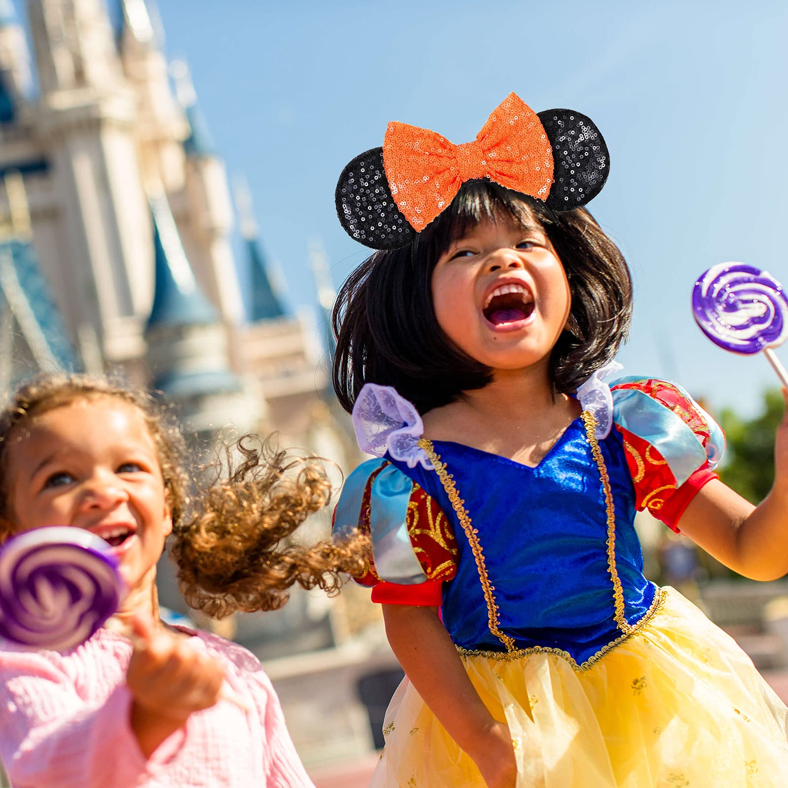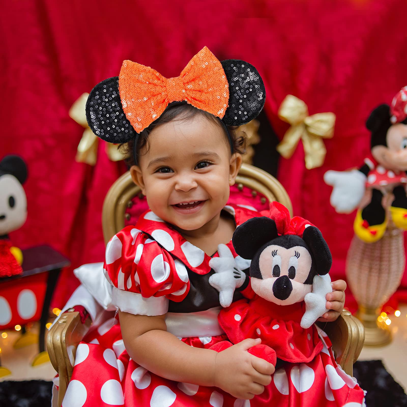 FANYITY Mouse Ears, Sequin Mouse Ears Headband for Girls Women Halloween Birthday Party (Orange Bow)