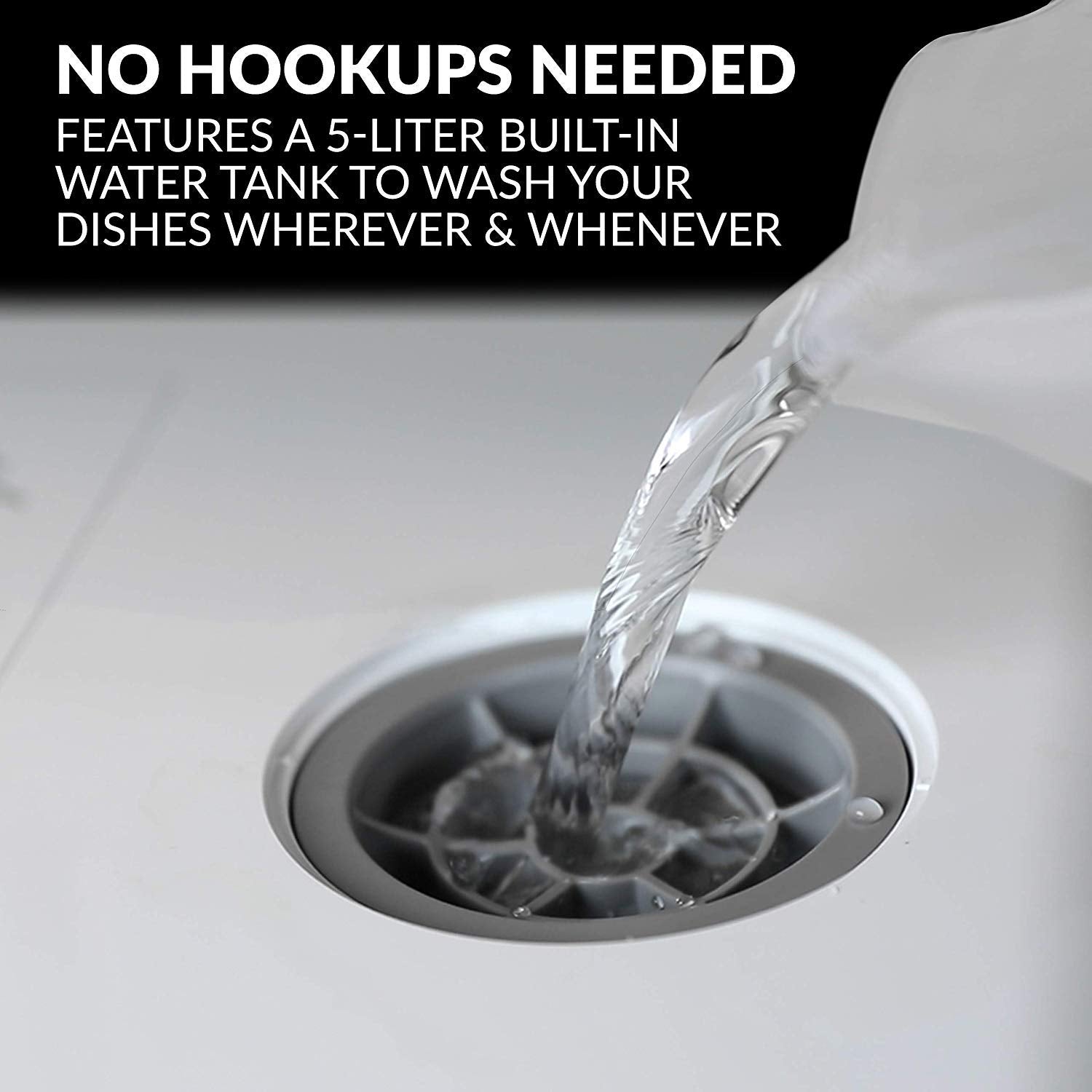 • COMPACT AND PORTABLE: This mini tabletop dishwasher is great for small kitchens, apartments, RVs, and boats. With its built-in 5-liter water tank, you don't need a hookup, making it convenient for any location. The space inside the dishwasher is big enough to fit 12-inch diameter dishes..Rated Power : 750W, Water Pressure : 20-120PSI..Specification of the socket is 10A 120VAC