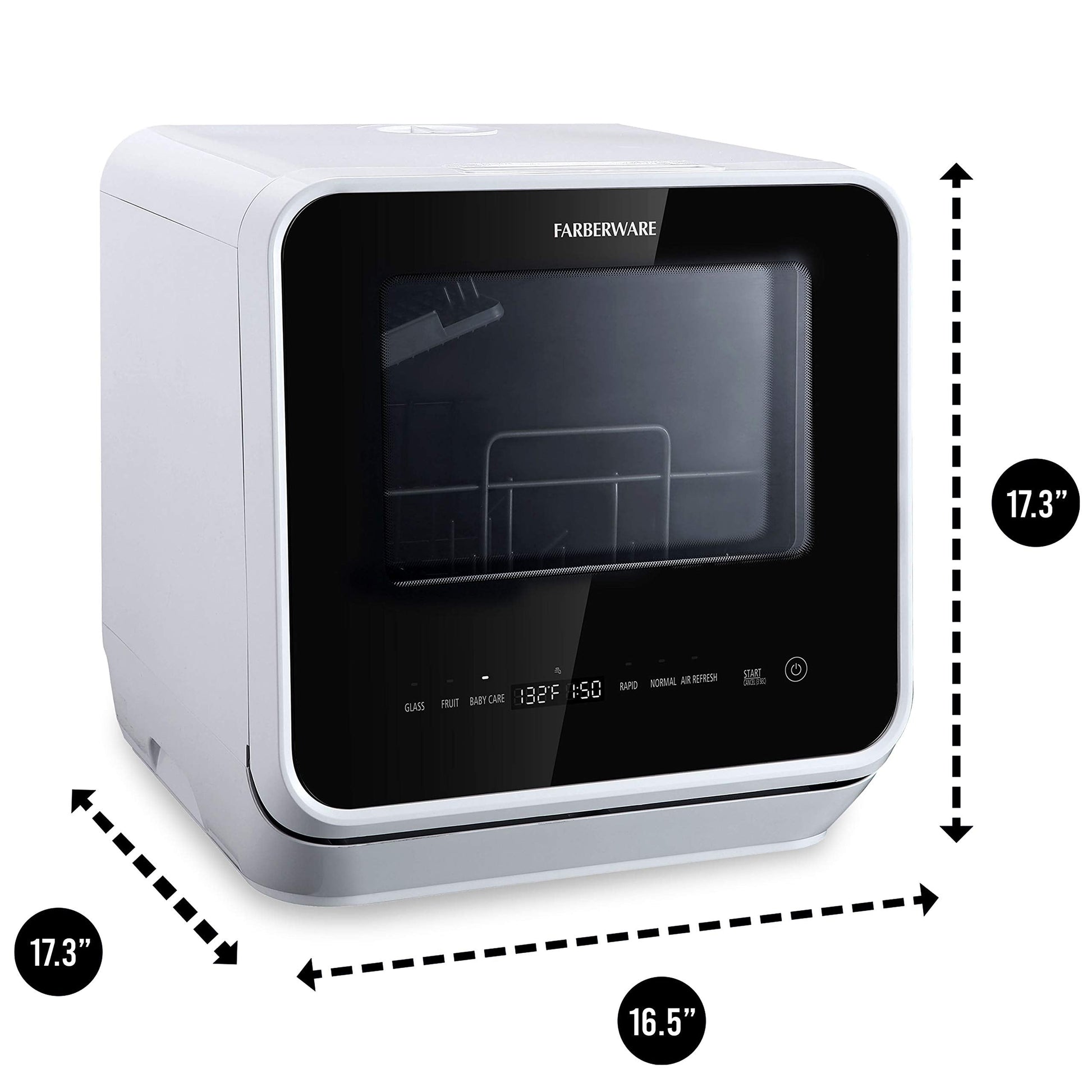 Farberware FDW05ASBWHA Complete Portable Countertop Dishwasher with 5-Liter Built-in Water Tank, 5 Programs, Baby Care, Glass & Fruit Wash, Black/White Original