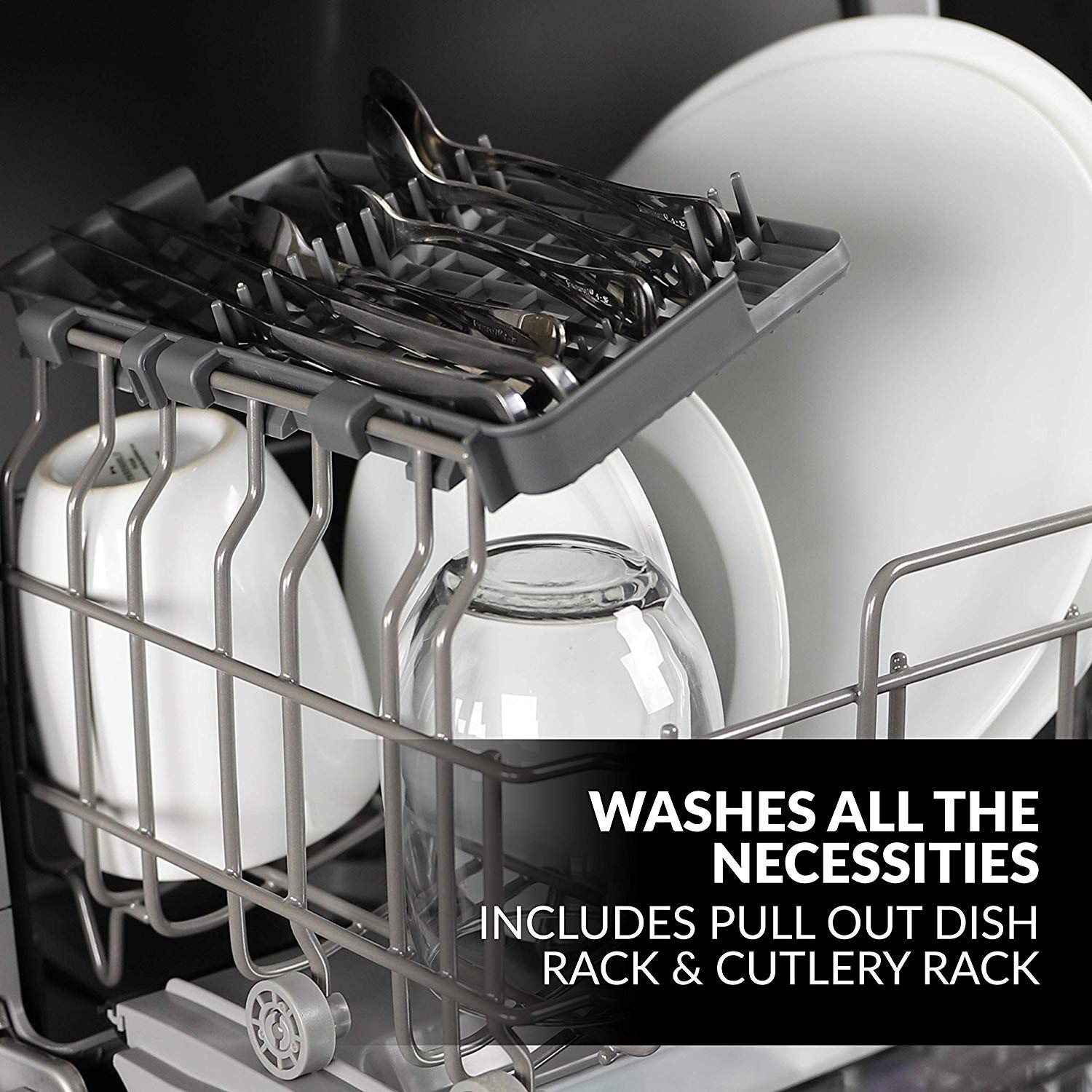 • TIME-SAVING CONVENIENCE: With just 40 minutes, water, and electricity, you can have clean dishes and sparkling glassware anywhere and anytime. This small dishwasher is great for busy individuals who need a quick and efficient solution for their dishwashing needs.