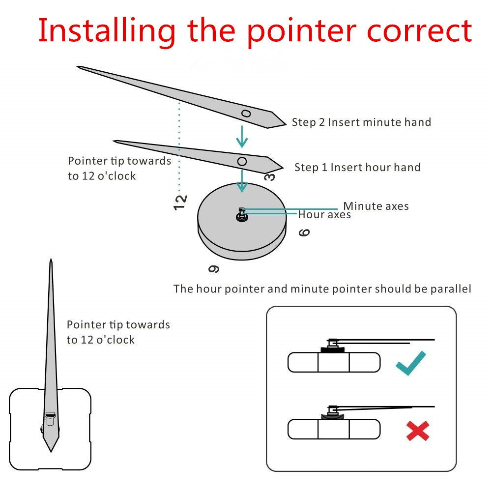 STEP1:Fasten the clock movement on the wall STEP2:peel off protection film from mirror,stick it on the EVA number.Cover the clock movement with the auxiliary scale,stick the numbers at the right site according to the scale. STEP3:Take down the clock movement,fixing the hour hand ,then minute hand.Tips:press the clock hands into the clock axle and point at 12 o'clock. STEP4:Adjust the time by button on the clock movement and install the battery. STEP5:Hanging the clock movement on the wall. STEP6:Well done!You can enjoy your art-work now(No retail packaging)