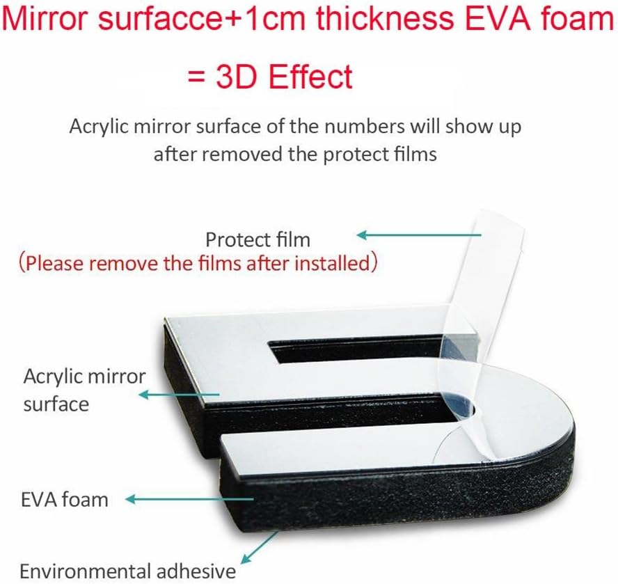 3D Effect : The number is made of 10mm thickness EVA Foam+1mm Acrylic Mirror Surface Piece