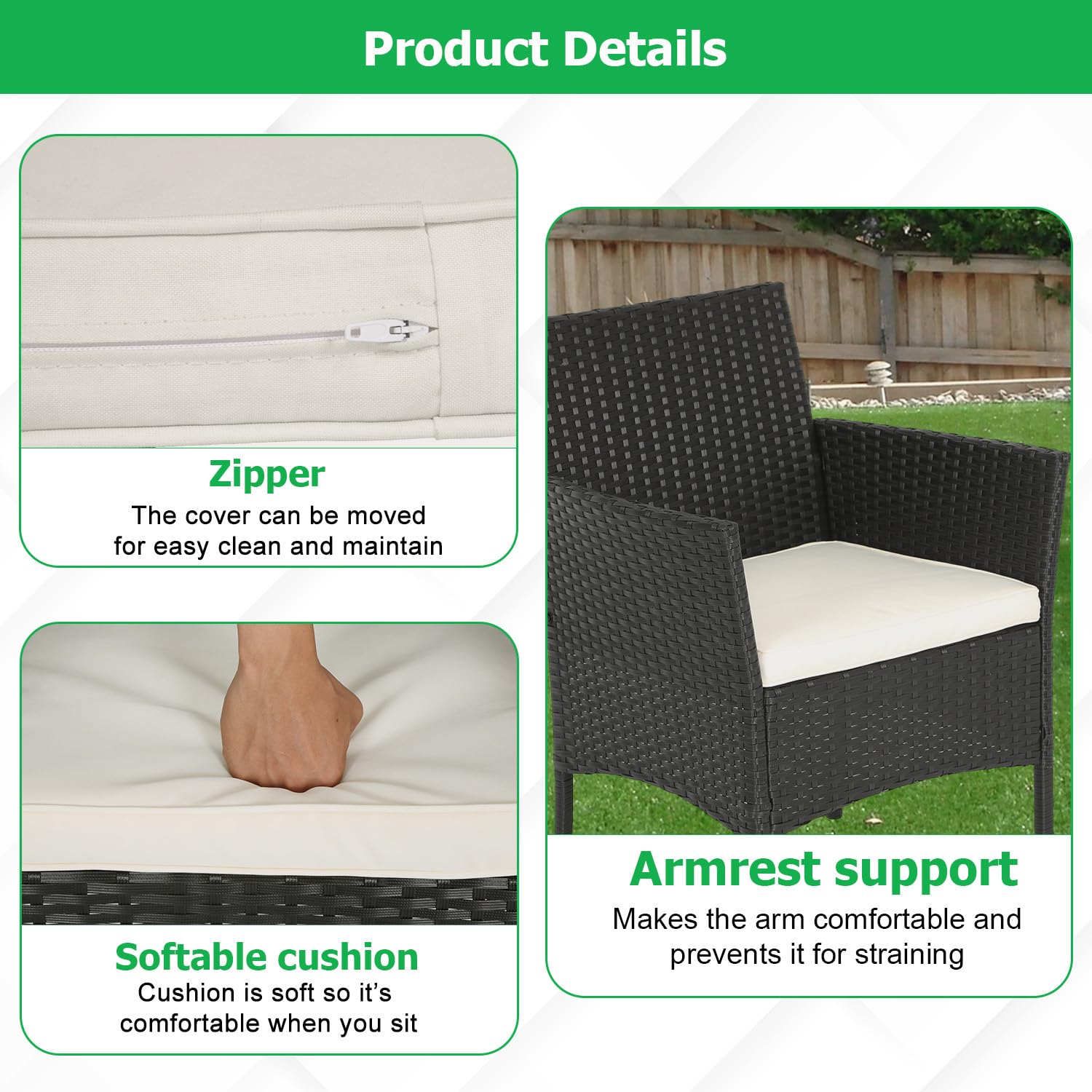 • ❤ High Quality : This patio furniture set is made with a powder-coated steel frame and all-weather PE rattan wicker for a comfortable experience.The wicker of the Outdoor furniture set is sturdy but also very light. Each chair can hold up to 200 lbs weight capacity.