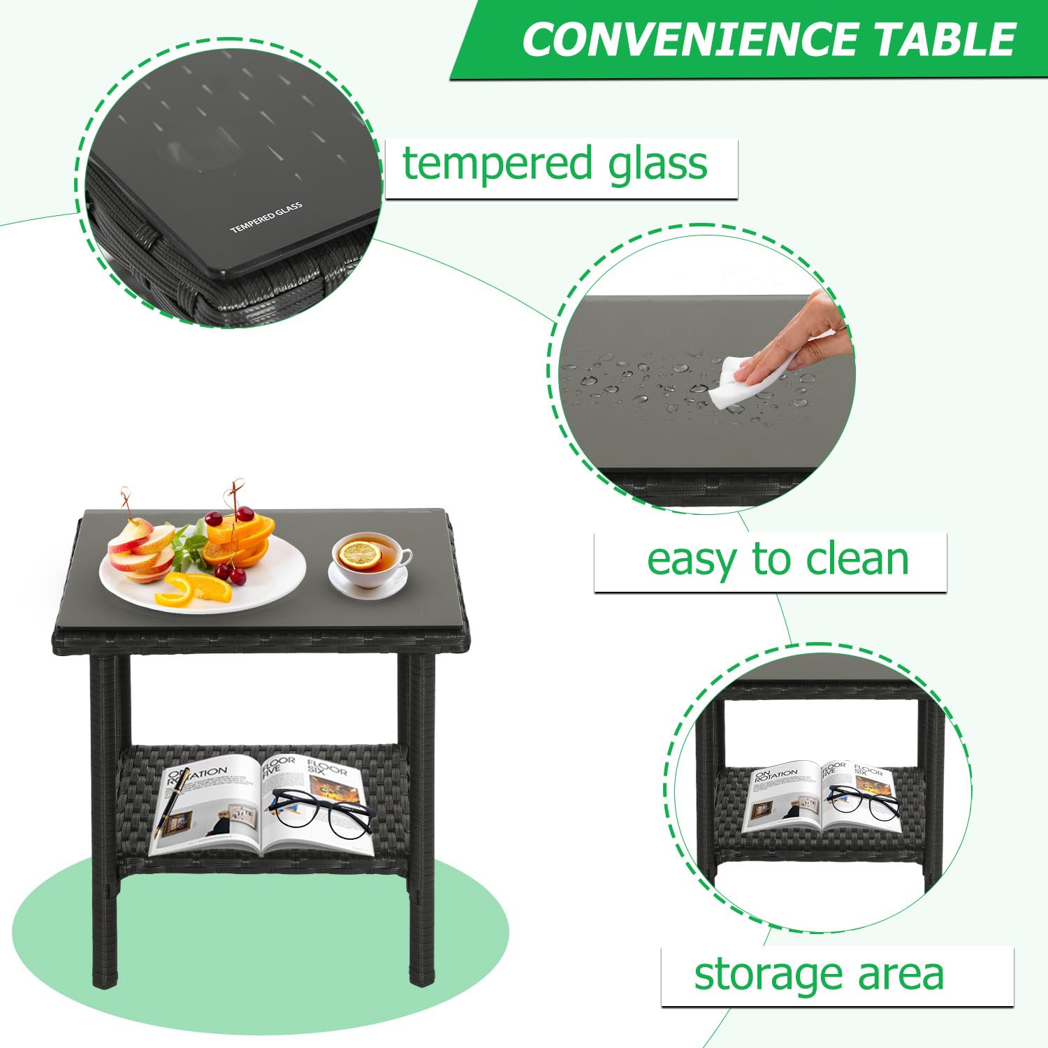 • ❤ Convenient Cleaning : This outdoor patio furniture set includes soft sponge-filled cushions with removable covers for easy cleaning. The zippered cushion covers can be quickly removed and washed. The glass-top coffee table is simple to maintain—just wipe it with a cloth. The smooth surfaces allow for quick and effortless cleaning.