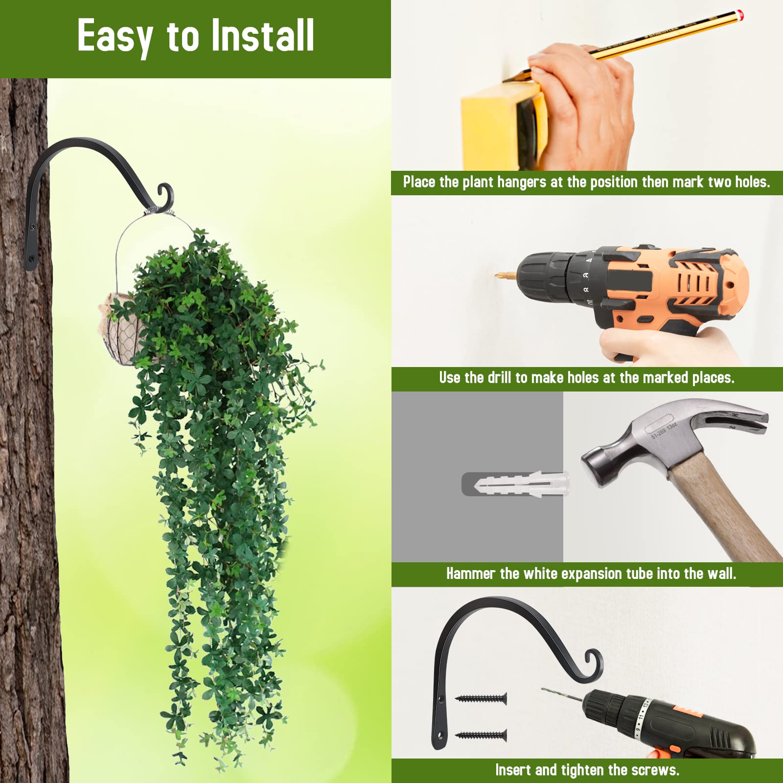 • 【MUTI-PURPOSE】 Heavy-duty hanging plant brackets are ideal for hanging large bird feeders, heavy lanterns, flower pots, baskets, wind chimes use. Whether indoor or outdoor, they can bring you beauty and elegance.