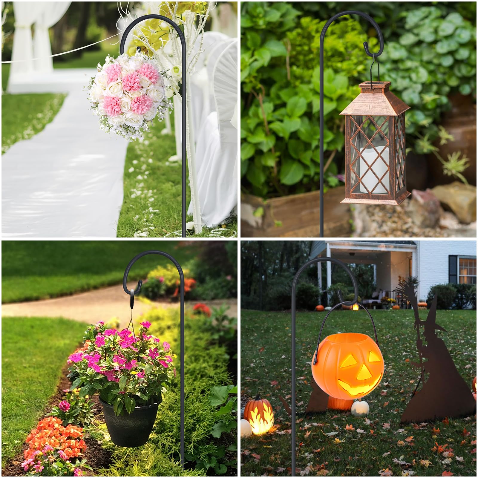 • 【Wide Application】The shepherds hook is great for hanging small flower pots, solar lights, flower jars, mason jars, wind chimes, string lights, wreath, flower balls, isle markers, bird baths, holiday decorations and other garden decorations. You also can use it for outdoor wedding aisle, camping or at gravesite.
