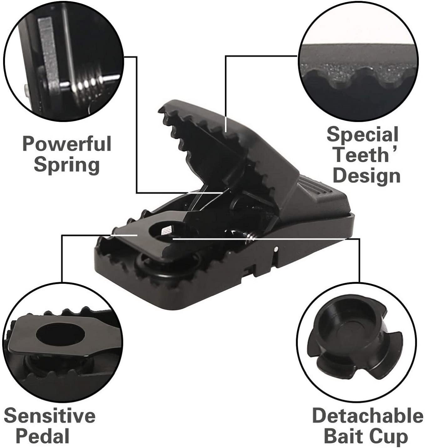• Easy to use and set - Just put a bait in the cup, and put it back to the mouse trap, keep the trap clamp open, you can place the mouse traps both outdoor and indoor use.