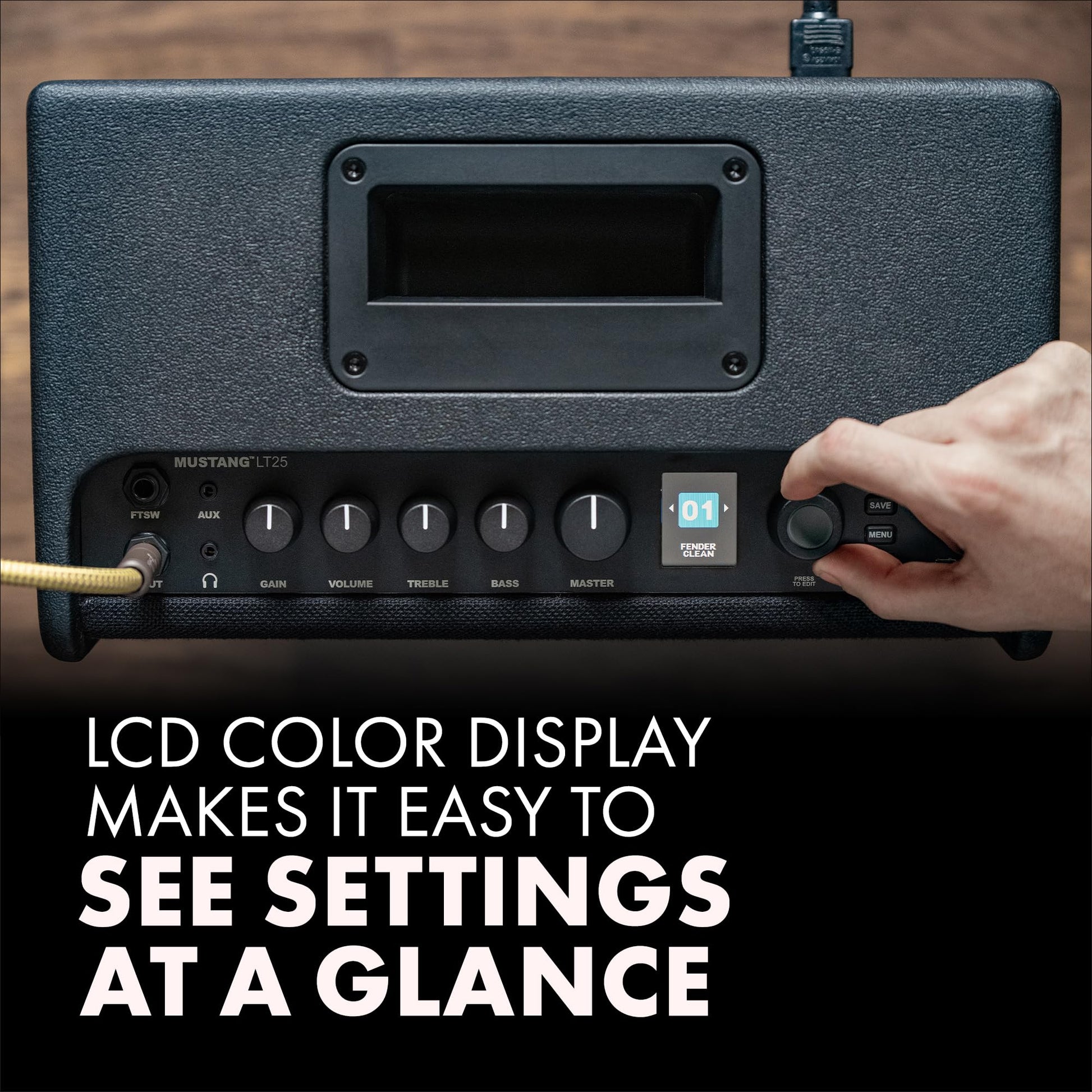 Mustang LT25 incorporates what we’ve learned over decades of producing the best-sounding guitar amps on the planet. It’s ideal for beginners and students, with a super-simple user interface and a collection of 30 presets covering a wide range of music—a “greatest hits” of electric guitar tones. The versatile signal chain with high-quality onboard amp and effects models produces amazing tones, making it an ideal practice amp for home or office.