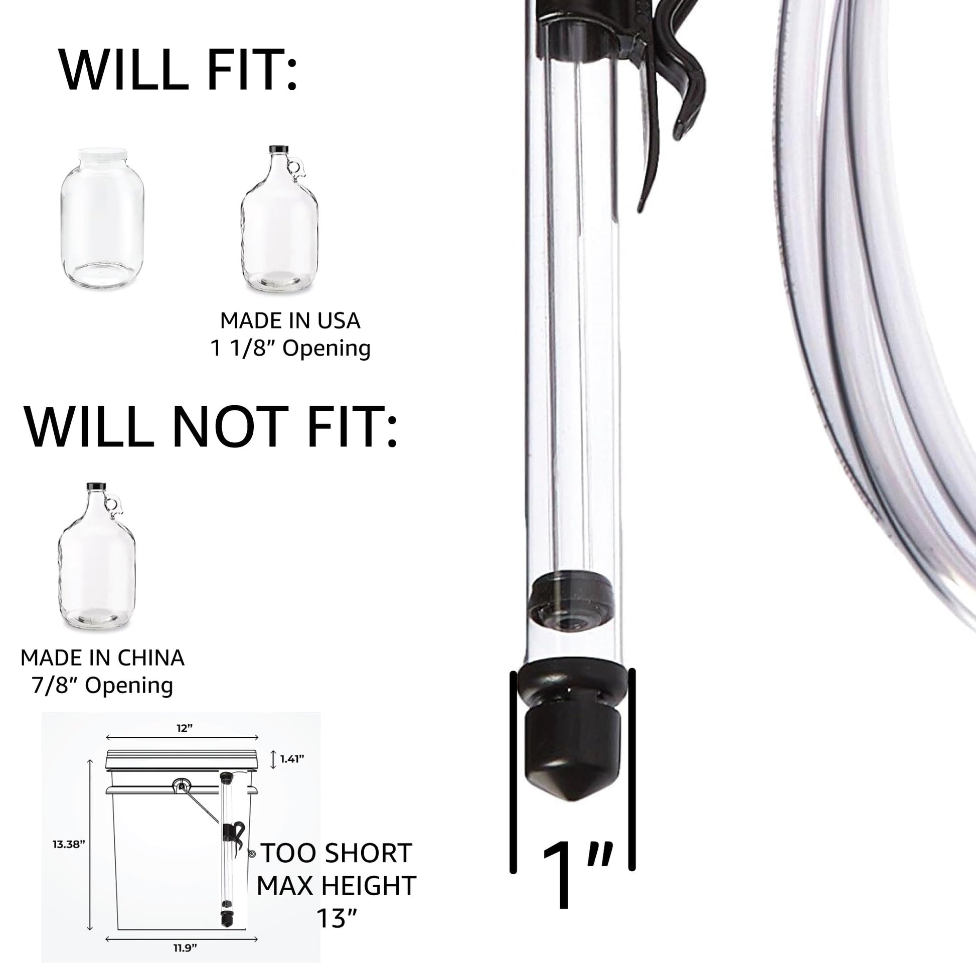 • 14" LONG MINI AUTO SIPHON: Will fit into openings as small as 1" or 25mm. Please Measure your container to confirm fitment in Height and size of the opening - Designed for small batch brewing: The Fermtech Auto-Siphon Mini is the ideal tool for transferring liquids in small batches, such as beer, tea, or kombucha. It’s great for use with wine accessories, a wine-making kit, or a fermentation kit. Its compact size is ideal for hobbyists or anyone working with limited quantities. The siphon ensures smooth liquid movement between containers, minimizing spills and reducing waste during brewing, bottling, or fermentation tasks.