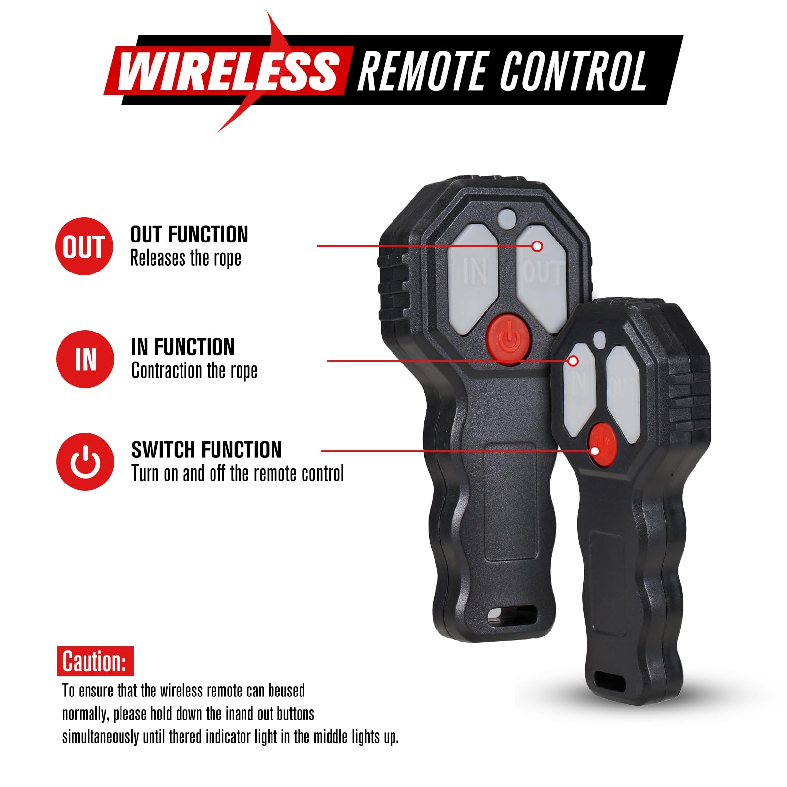 • WIRELESS CONTROL SYSTEM: The wireless remote control has a relay switch inside that can transmit the power from the vehicle battery to the winch, including 80FT long wireless control, and uses upgraded synthetic rope that is more than 10 times stronger than traditional ones.