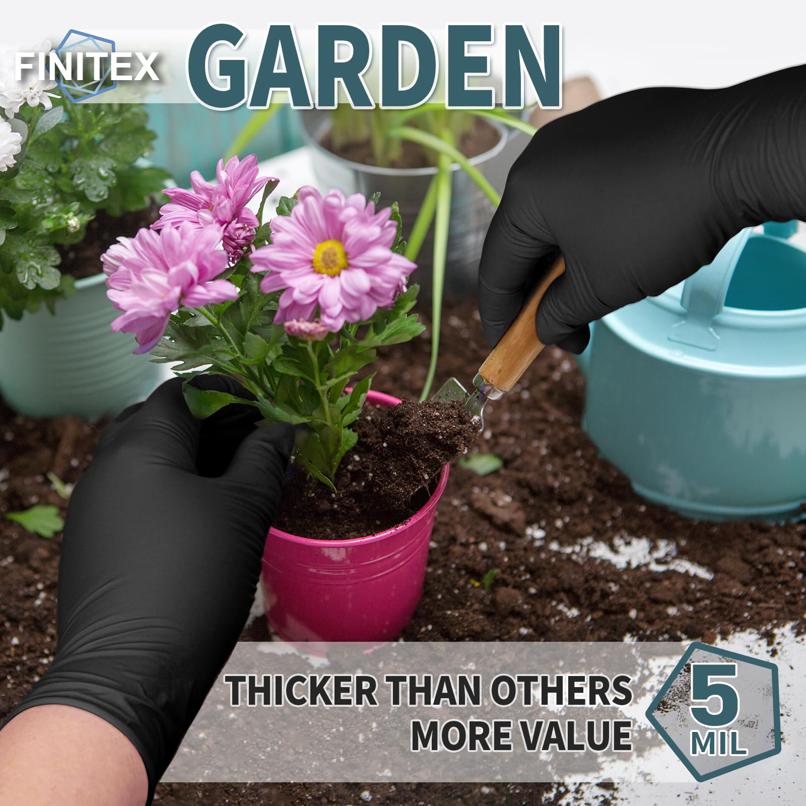FINITEX - Black Nitrile Disposable Gloves, 5mil, Powder/Latex-Free, Medical Exam 100 PCS For Examination Home Cleaning Food Glove (X-Large)