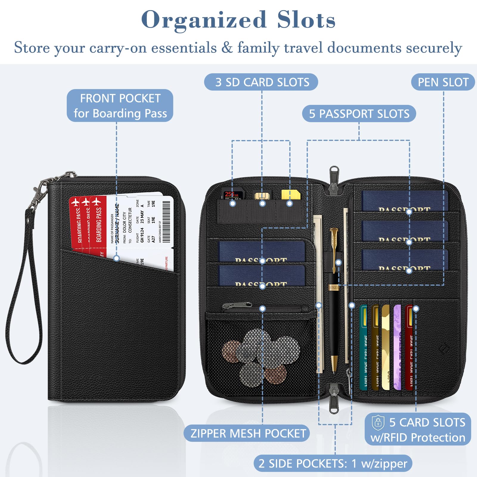 • Designed for Safe Family Travel: An indispensable passport organizer for families during visits to airports, bustling marketplaces, airplanes, buses, trains, as well as various events and festivals. Ideal for both international and domestic travel.