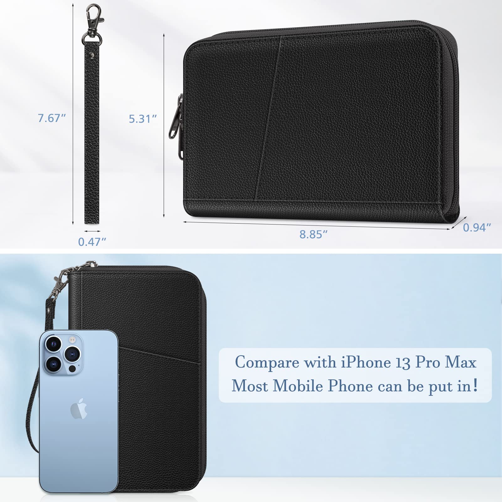 • Durable Material: Crafted from vegan leather with sturdy zippers and a tear-resistant wristlet, this passport wallet boasts a durable, stylish, functional, and unisex design.