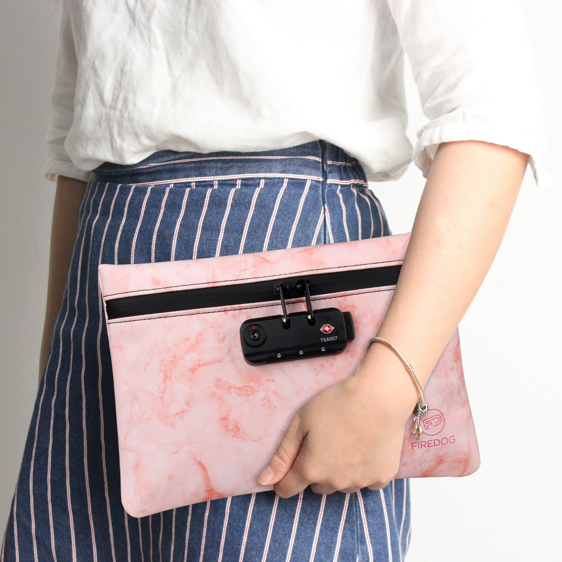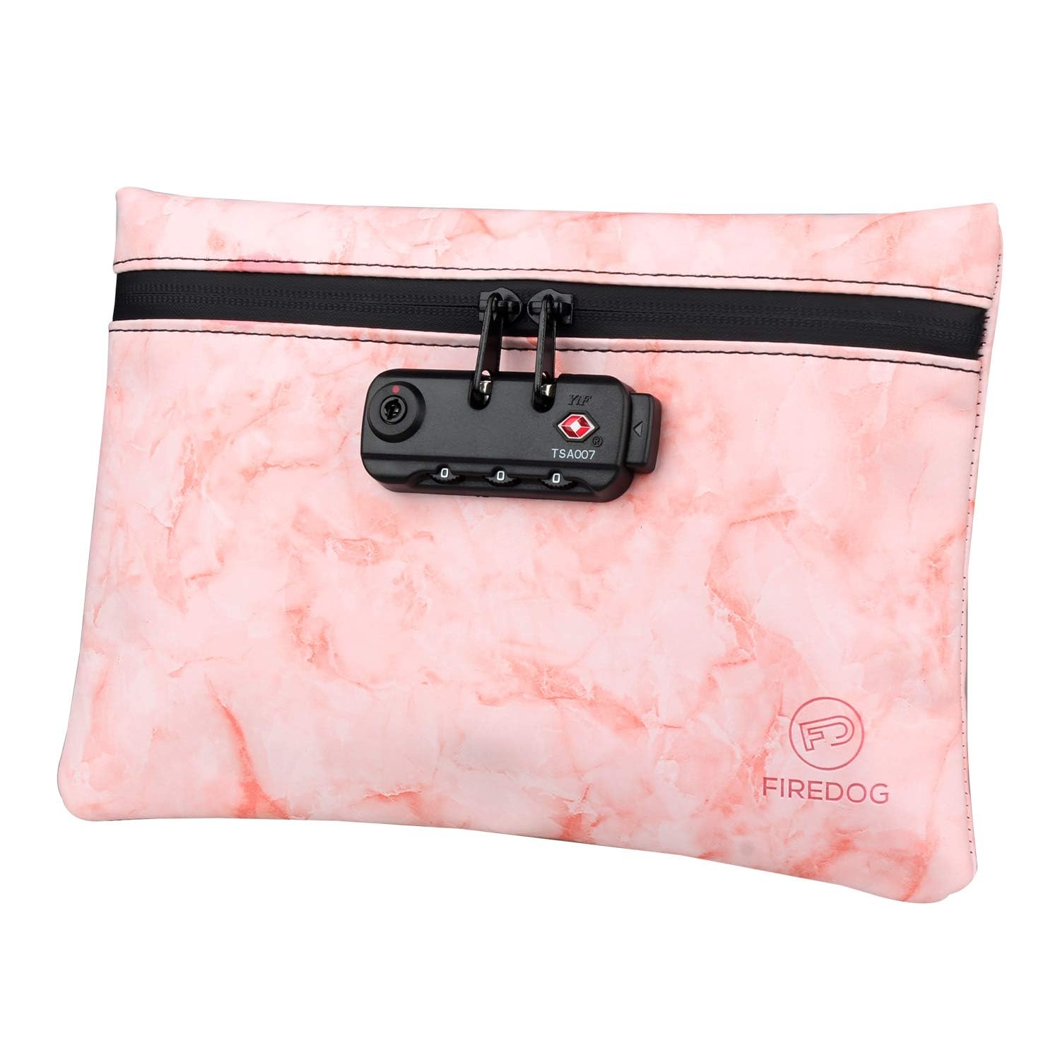 FIREDOG Smell Proof Bag with Lock, 6x9 Odor Proof Pouch Case Container for Travel Stash Storage (Marble Red)