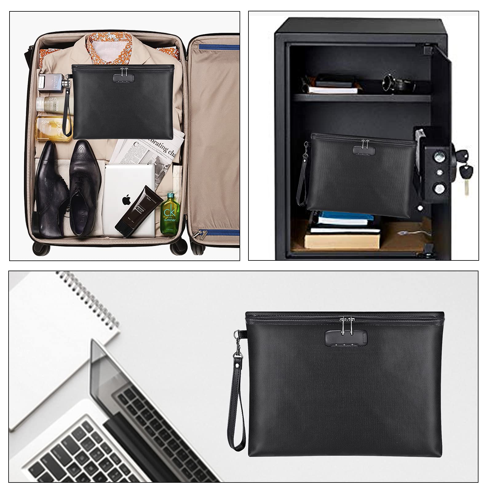 • [Multifunctional Document Bag] This A4 letter size fireproof file bag can store A4 size documents, contracts, iPads, mobile phones, passports, cash, pens, credit cards, etc. You can not only put fireproof document storage in offices, fireproof safes, and lockers, but you can also use cash pouch for business trips and travel. Of course, as a gift to friends and colleagues is also a good choice.
