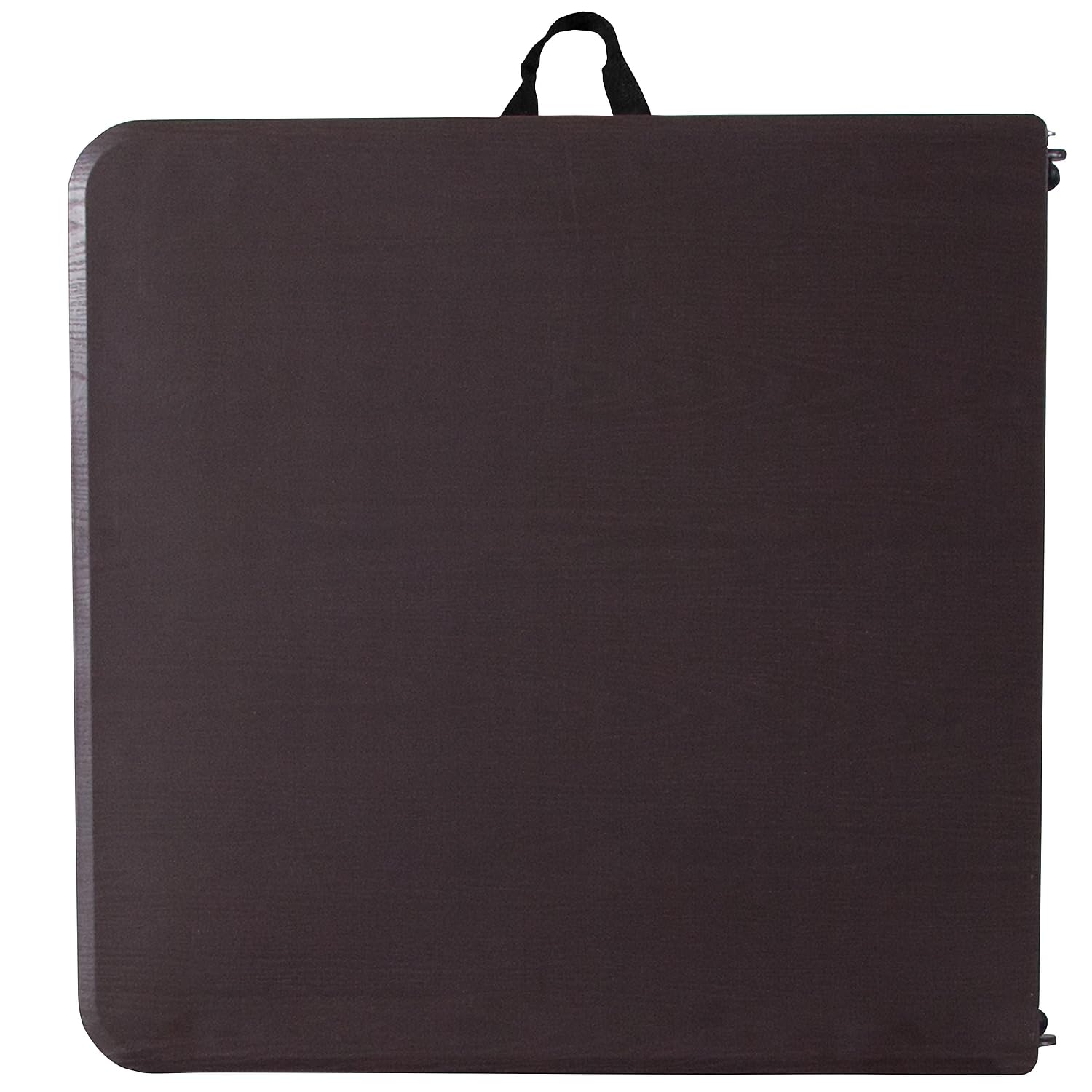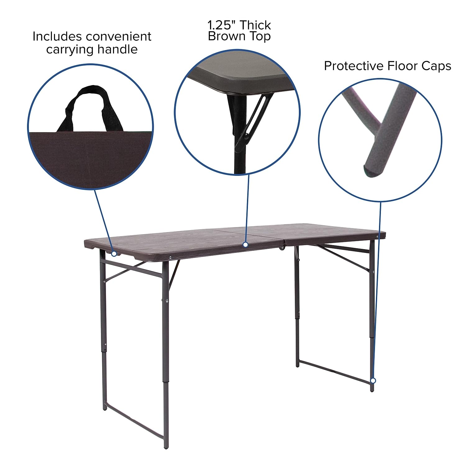 Flash Furniture Mills 4-Foot Height Adjustable Bi-Fold Brown Wood Grain Plastic Folding Table with Carrying Handle