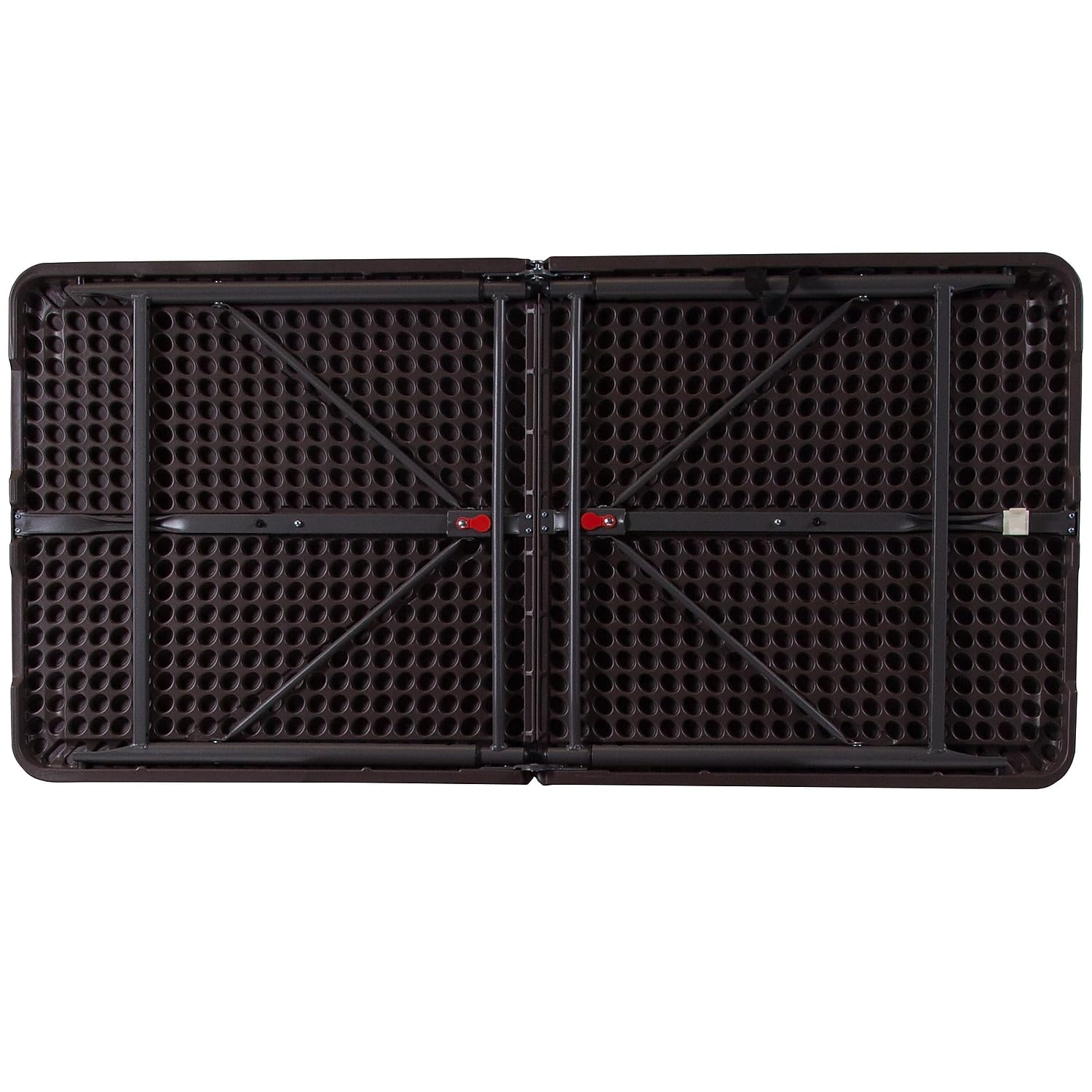 Details: Go ahead and invite everyone to your next gathering without the worry of where they will sit. This adjustable height bi-fold plastic folding table is a great option when you need a temporary dining surface or an everyday workstation in your home or office. This versatile folding table can be dressed up or used as is with its dark colored top during holiday events, parties and arts and craft activities. Adjust the table's height to accommodate different users. Place multiple tables side by side or in rows to accommodate large party events. The waterproof, impact and stain resistant top have a 220 pound static load capacity and is commercial rated for use as a training table, in banquet halls and at trade shows. The thick, dark gray tabletop is 4' long, 1.25" thick, and will seat up to 4 adults. Attractive gray powder coated legs lock securely in place while in use and non-marring floor caps protect your floor by sliding smoothly when you need to move the table. This durable, easy to clean table folds in half, making it easy to store and transport, using the convenient carrying handle attached on the side. The 23.5"W x 48.25"L Height Adjustable Bi-Fold Dark Gray Plastic Folding Table with Carrying Handle is perfect for in-home events or on the deck or patio while entertaining during a barbeque. Designed for both indoor and outdoor use, store table indoors and protect the frame from extreme moisture. Rectangular folding tables offer the best solution for your home or business.