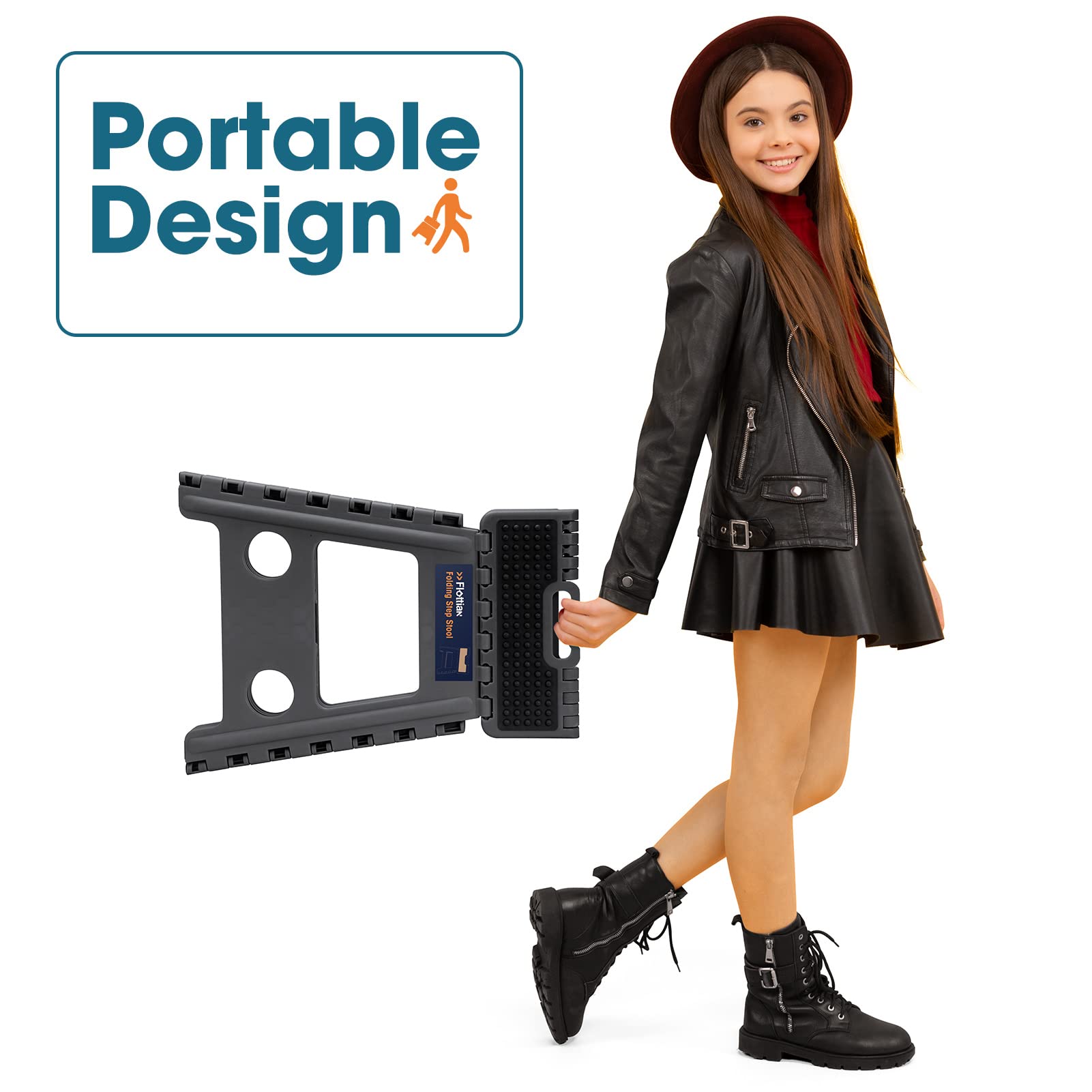 • SAFETY FIRST - Our step stool has anti-skid top and rubber feet designed for maximum grip , preventing slippage. Unique, grip-dot textured surface makes the folding step stool safe for everyone, including kids. Also, the rounded corners, and tight hinges, make it safer for the child to use as it protects him/her from possible bruises that could result from sharp edges.