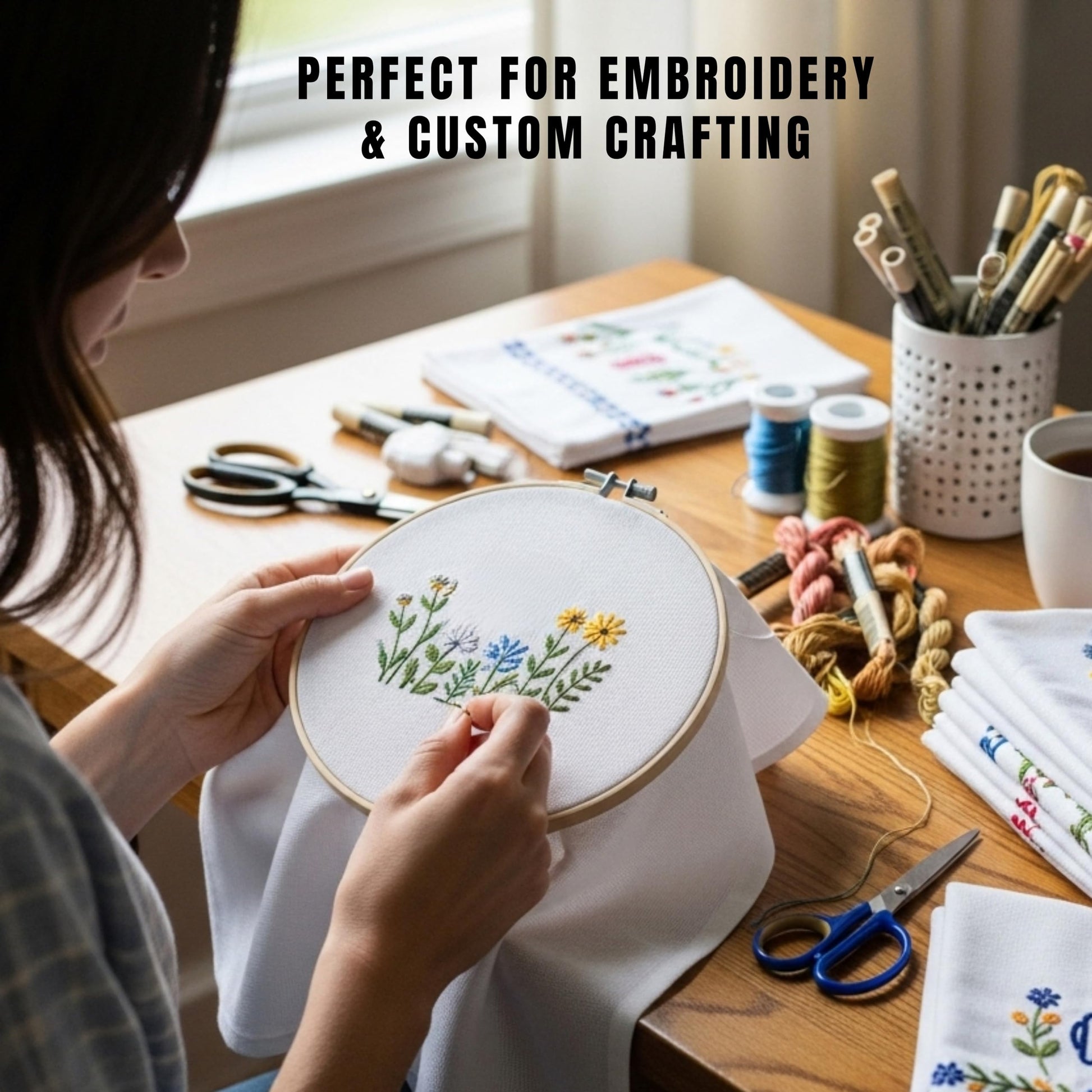 • ✅ Craft & Embroidery Friendly – Smooth, Sturdy Finish A favourite among Dyers! These towels are perfect for embroidery, heat transfer vinyl (HTV), screen printing, and creating personalized kitchen gifts. Popular with those searching for “blank flour sack towels for embroidery” and “flour sack towels for crafts.”
