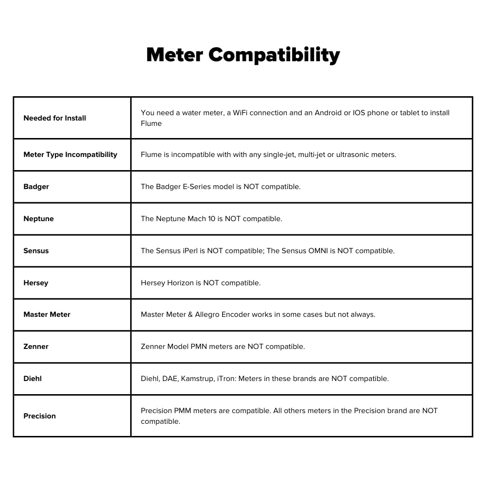 • COMPATIBLE WITH 95% OF RESIDENTIAL WATER METERS: Works with most standard meters nationwide. Requires Wi-Fi and an Android/iOS device for setup. See images for full compatibility list before purchase.