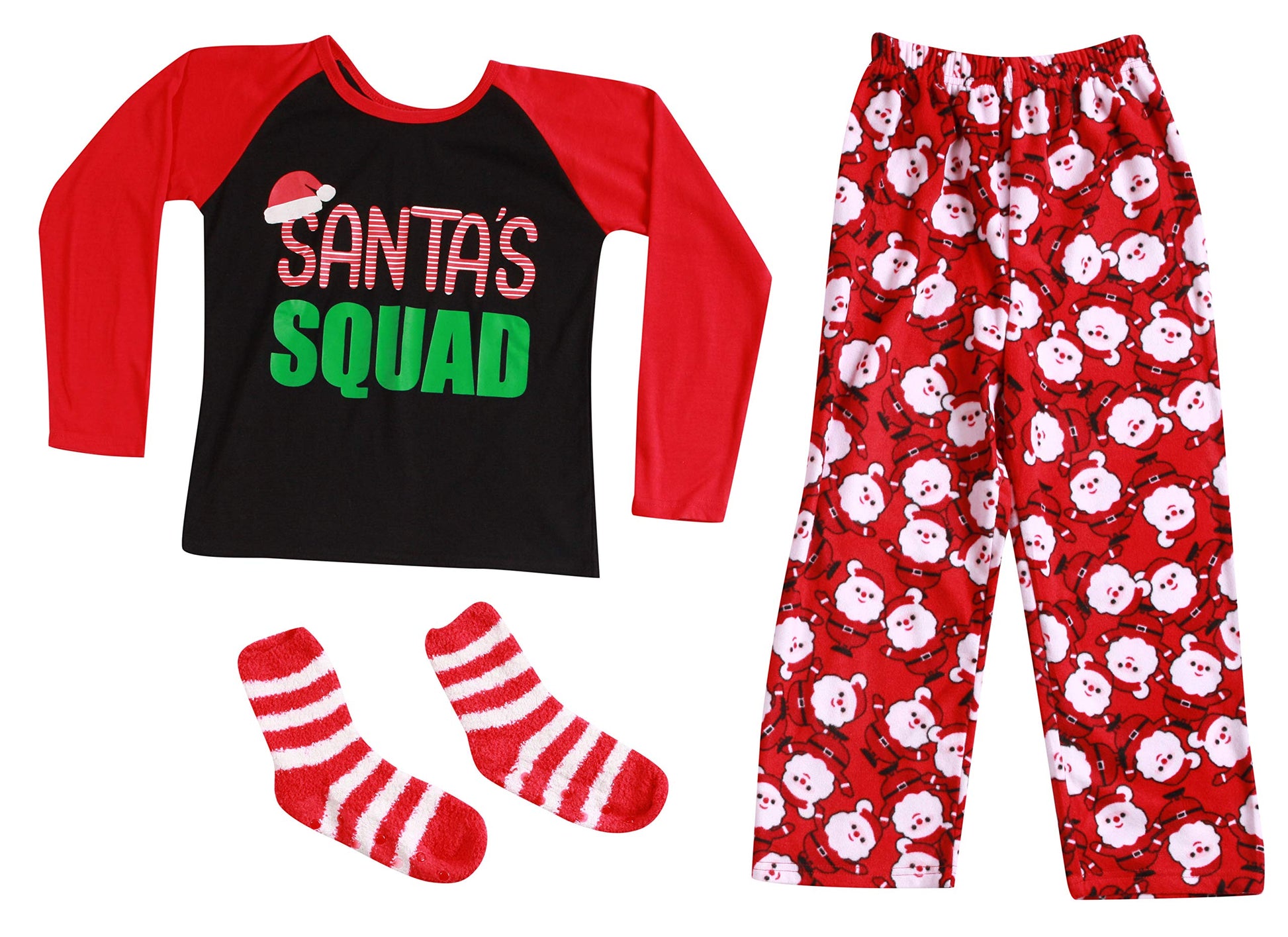 #followme Womens Microfleece Pajamas Set, Family Pajamas, Santa Squad, Large