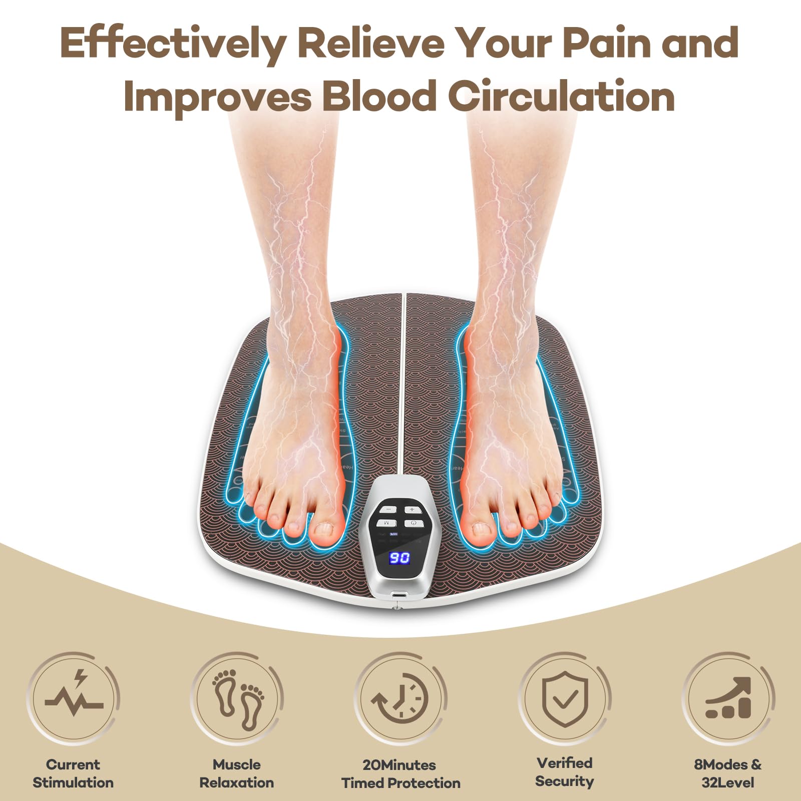 Foot Massager Mat for Neuropathy,EMS Foot Massager for Circulation and Pain Relief, Foldable Feet and Calves Massage Machine with 8 Modes and 32 Intensity Levels for Muscle Relaxation