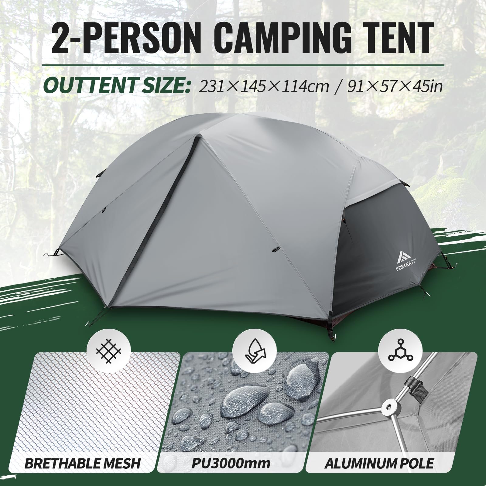 Forceatt Tent for 2 Person is Waterproof and Windproof, Camping Tent for 3 to 4 Seasons,Lightweight Aluminum Pole Backpacking Tent Can be Set Up Quickly,Great for Hiking…