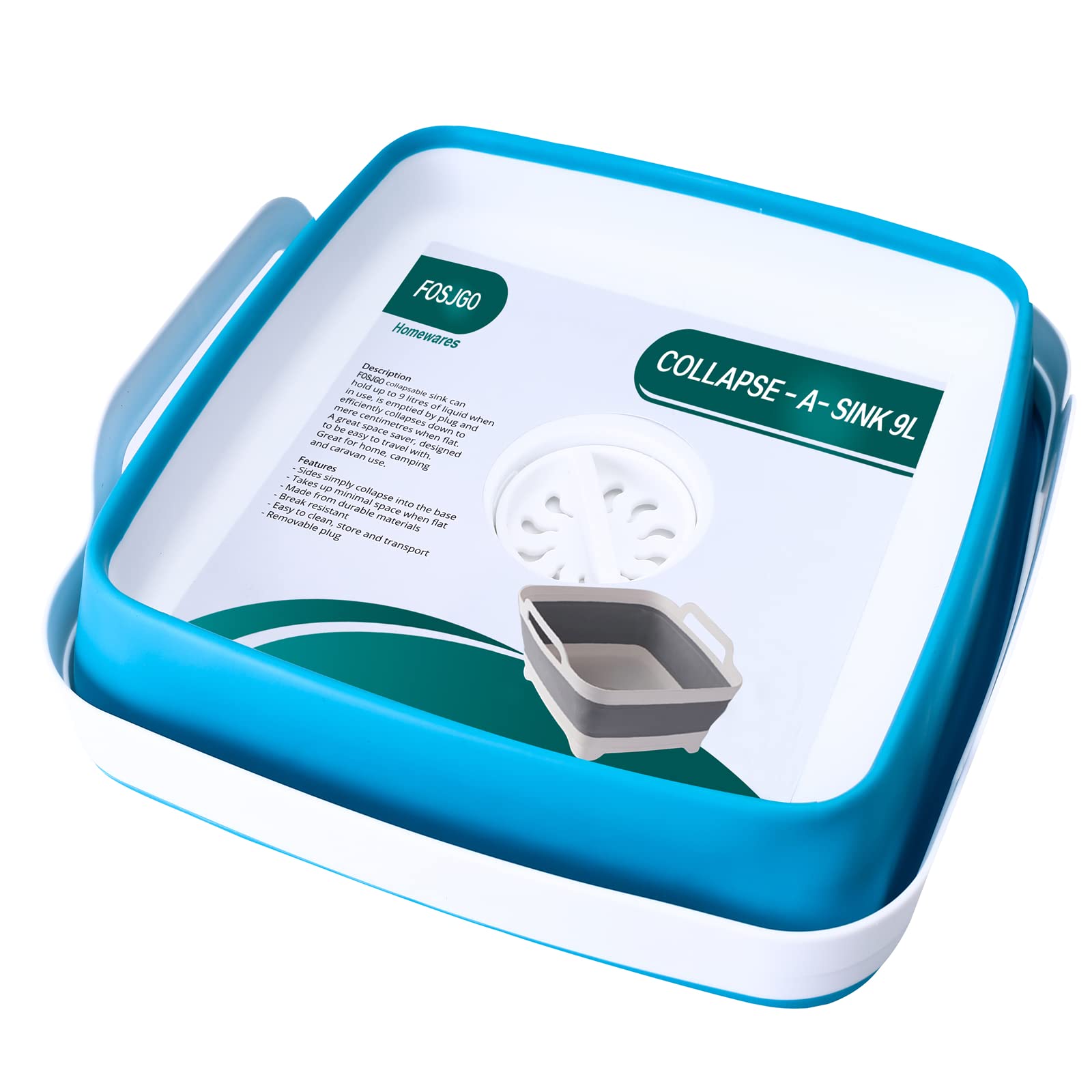 FOSJGO Dish Basin Collapsible with Drain Plug Carry Handles for 9 L Capacity, Collapsible Sink Tub, Dish Wash Basin, Portable Dish Tub, Foldable Dishpan for Camping Dish Washing Tub and RV Sink
