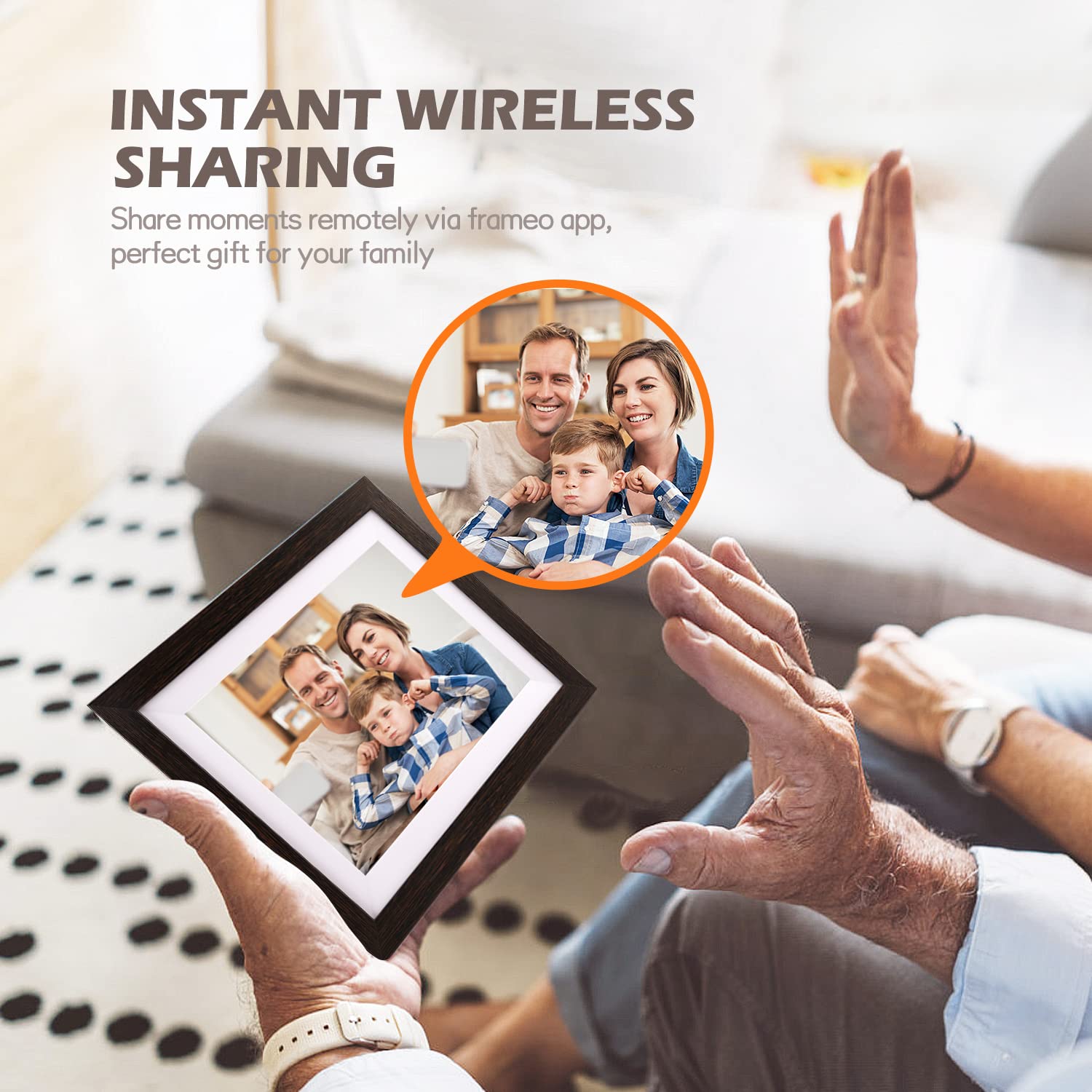 Frameo Digital Picture Frame WiFi 10.1inches Digital Photo Frame, Electronic Photo Frame Load from Phone, 1280x800 IPS Touch Screen HD Display, Auto-Rotate, Share Photos/Video-Great Gift(Brown Wood)