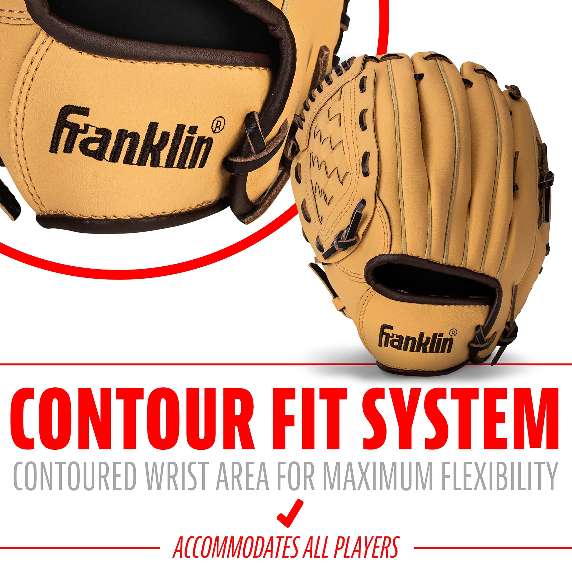 Franklin Sports Baseball + Softball Glove - Field Master Baseball + Softball Mitt - Youth Glove - Left Hand Throw - 10" - Camel Brown