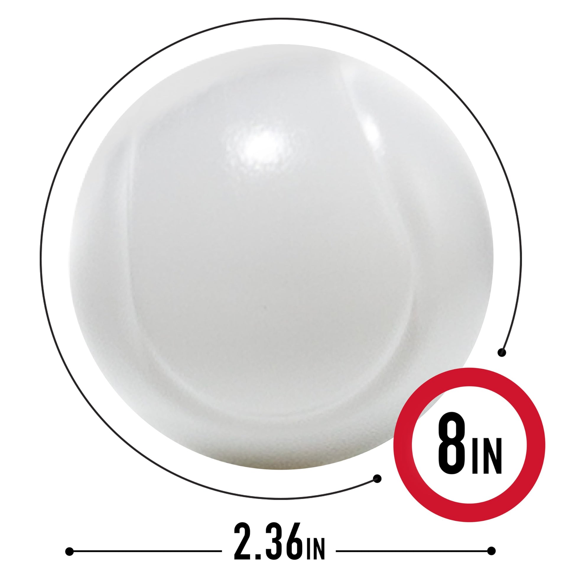Details: The Franklin Sports MLB Kids Pitching Machine Pop Rocket offers the excitement of a baseball batting cage with the fun shape of a rocket for young, developing first-time ball players. Turn on the Pop Rocket and watch the balls fly, with pitches every 7 seconds! The pitching machine features a 5-ball capacity feeder so that kids can swing and reset for the next pitch! There's no better way to improve on hand-eye coordination! This fun way of learning the game features the shape of a rocket to bring some additional excitement into the sport of baseball. With easy assembly in seconds, load with batteries and let your future baseball champ practice his Major League swing! The set comes complete with 1 Kids Pitching Machine Pop Rocket, 5 Plastic Baseballs, and 1 24inch Collapsible Telescopic Baseball Bat. Requires 4 "AA" Batteries (not included). Assembled Size: 21" x 10.5" x 12"