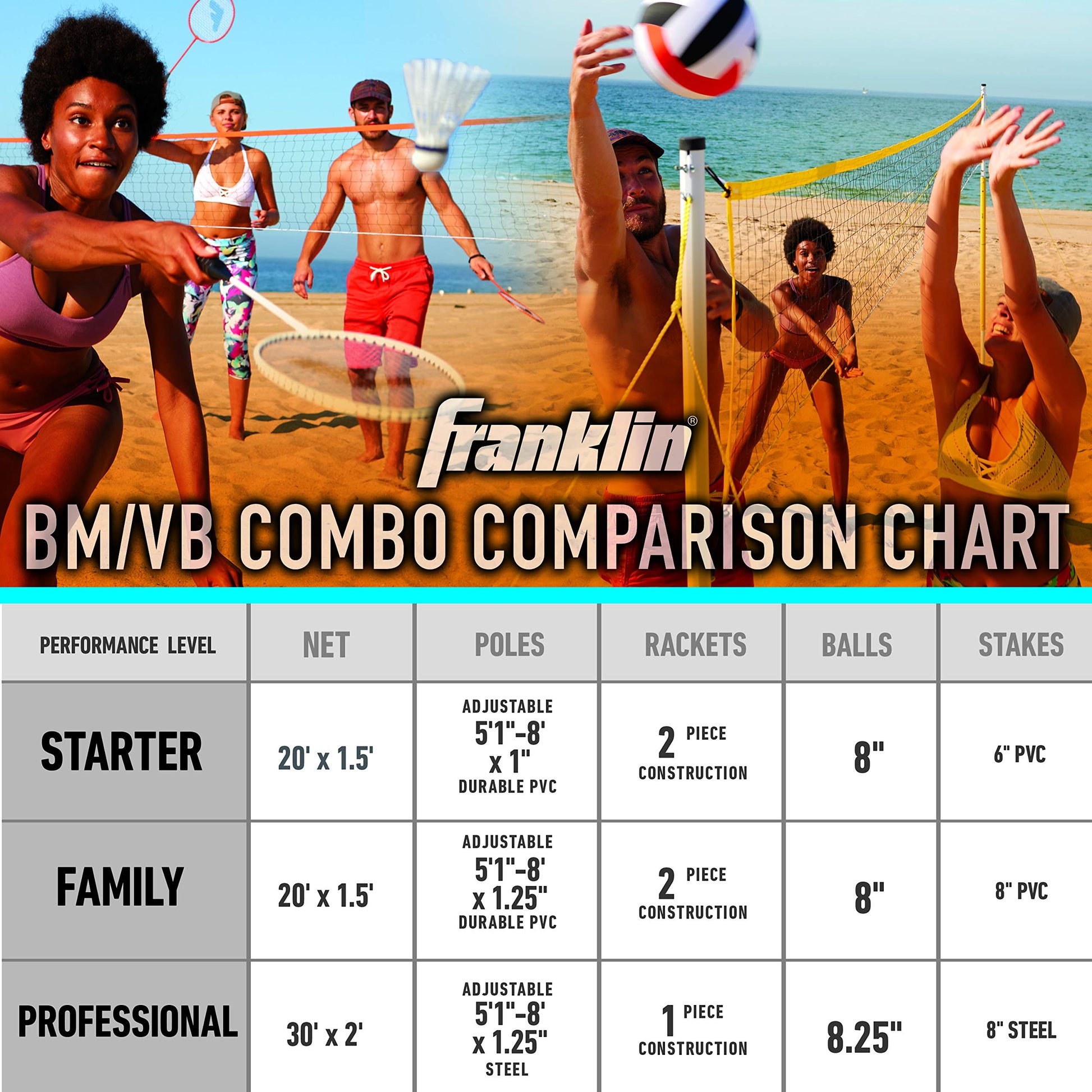 Franklin Sports Volleyball & Badminton Combo Set - Portable Backyard Net Set - Ball, Rackets & Birdie Included - Starter