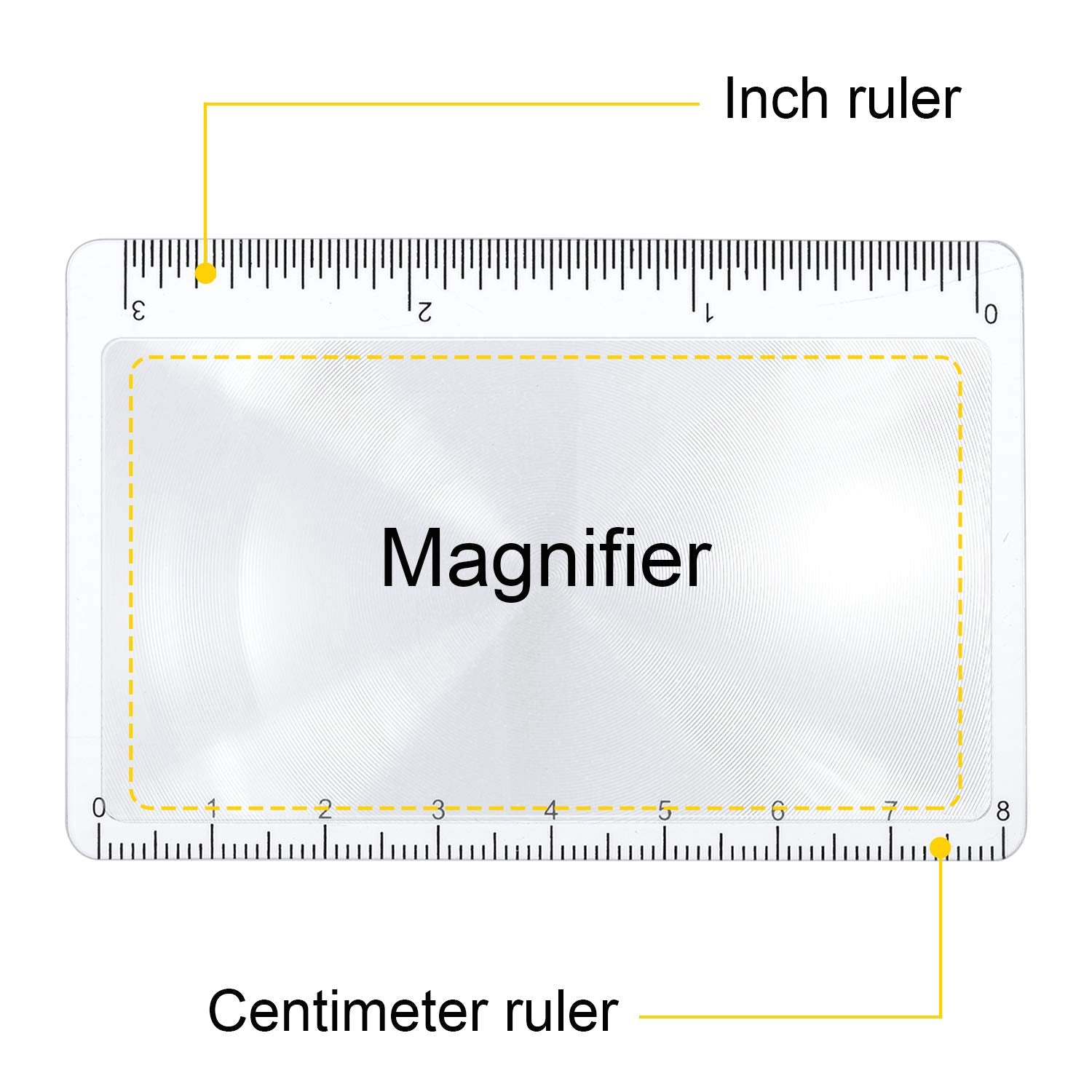 Frienda 20 Pieces Pocket Magnifying Glass Fresnel Lens Credit Card Pocket Magnifier Plastic Ruler Starting Solar Fire Emergency Bushcraft Outdoor Survival Leisure for Classroom Home Office