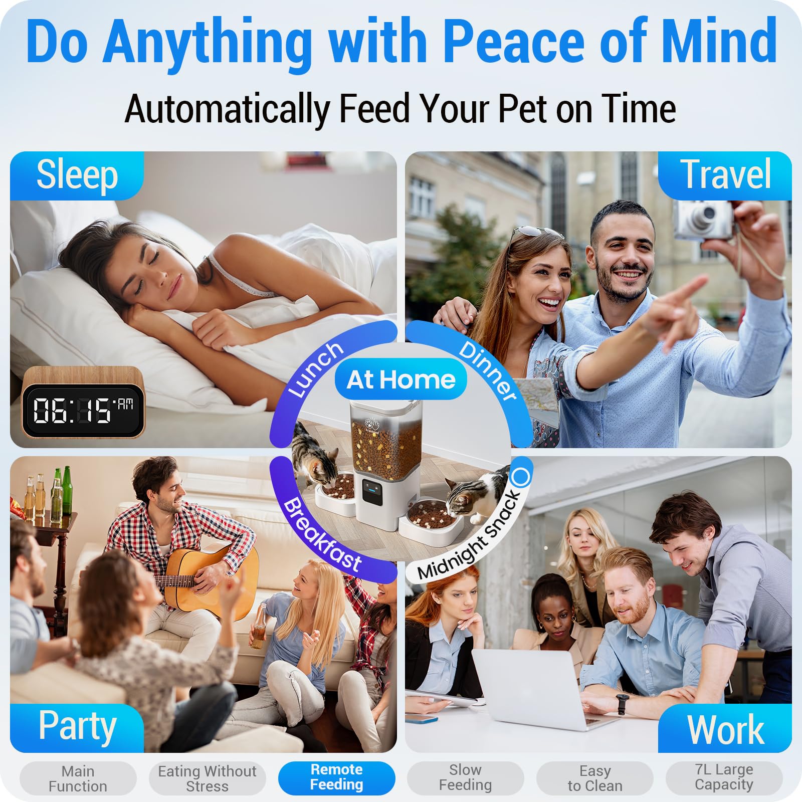 Frienhund Automatic Cat Feeder with Slow Feed for 2 Cats: 5G WiFi Automatic Dog Feeder with 7L Large Food Storage, Cat Food Dispenser with Alexa for Multiple Pets, Detachable for Easy Cleaning -29 Cup
