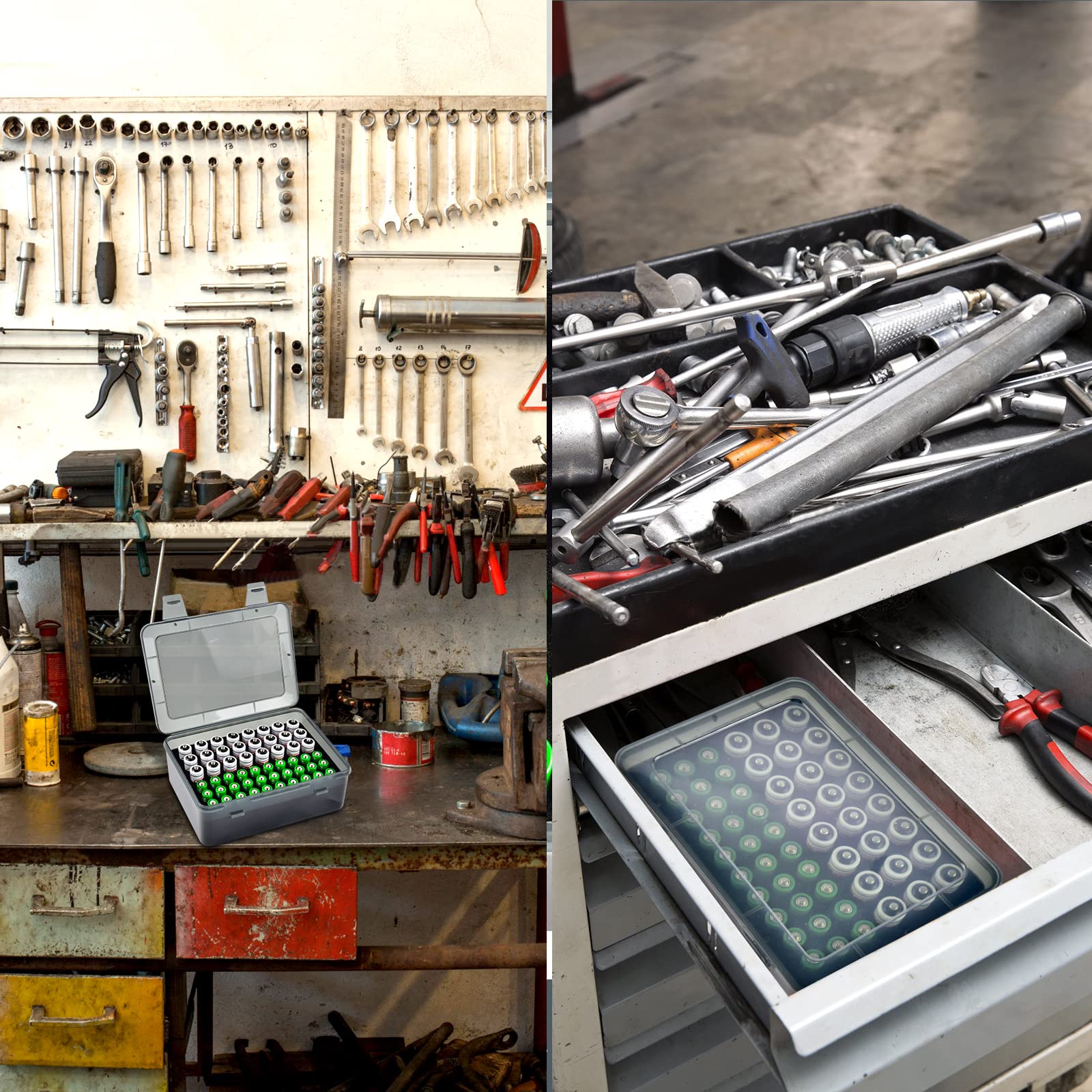 • Battery Storage Box: Battery holder case with thick and soft padding can fully protect your batteries. Detachable insert foam with well cut holes fits different-sized batteries snugly, also can tightly fix all batteries in the groove, avoid the friction between batteries.makes your mess battery regular and safe