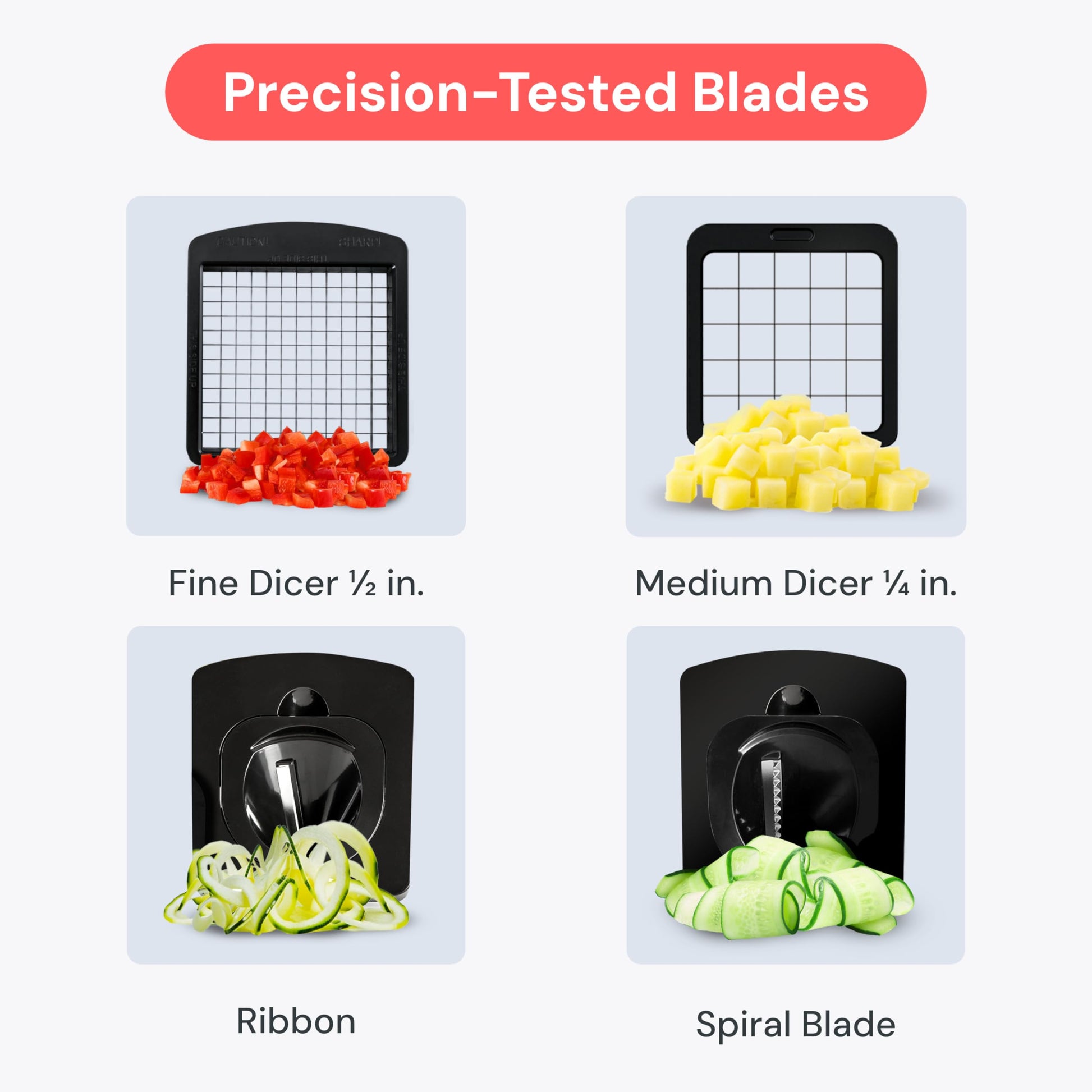 • Easy Meal Prep with Rust-Resistant Blades - Our vegetable chopper is perfect for anyone who wants to eat healthier but doesn't have a lot of time to spare. Dice potatoes, tomatoes, cucumbers, carrots, and more with the heavy-duty, rust-resistant blades. The 420 stainless steel blades retain razor sharpness for crisp, smooth dicing.