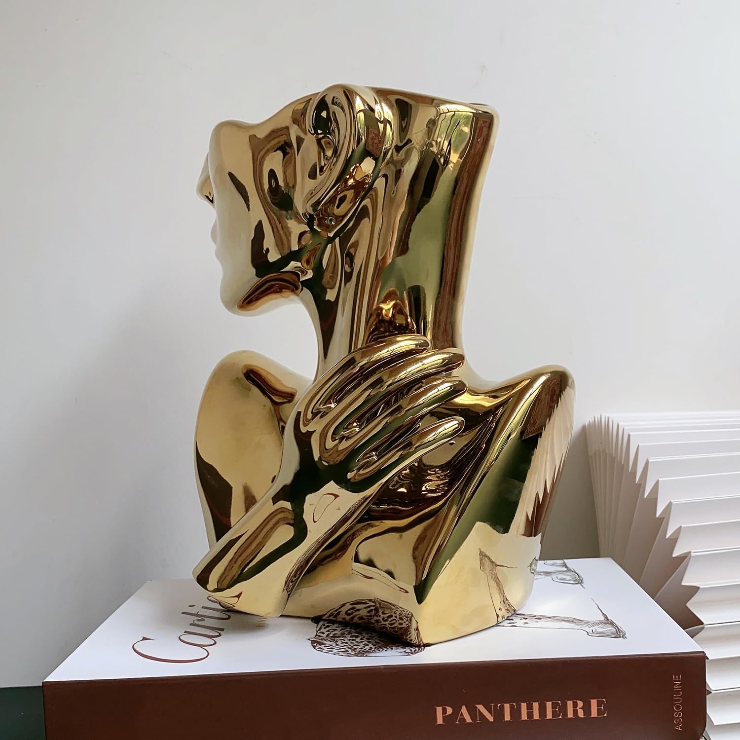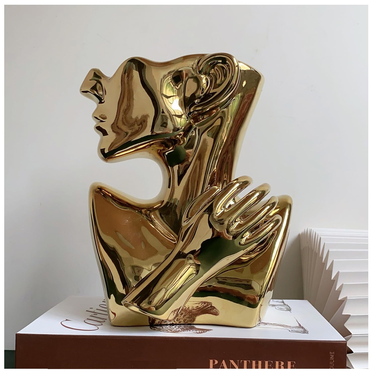 FUNSOBA Ceramics Statue Flower Vase Face Pots Bust Head Shaped for Birthday Gifts Home Office Decoration (Gold)