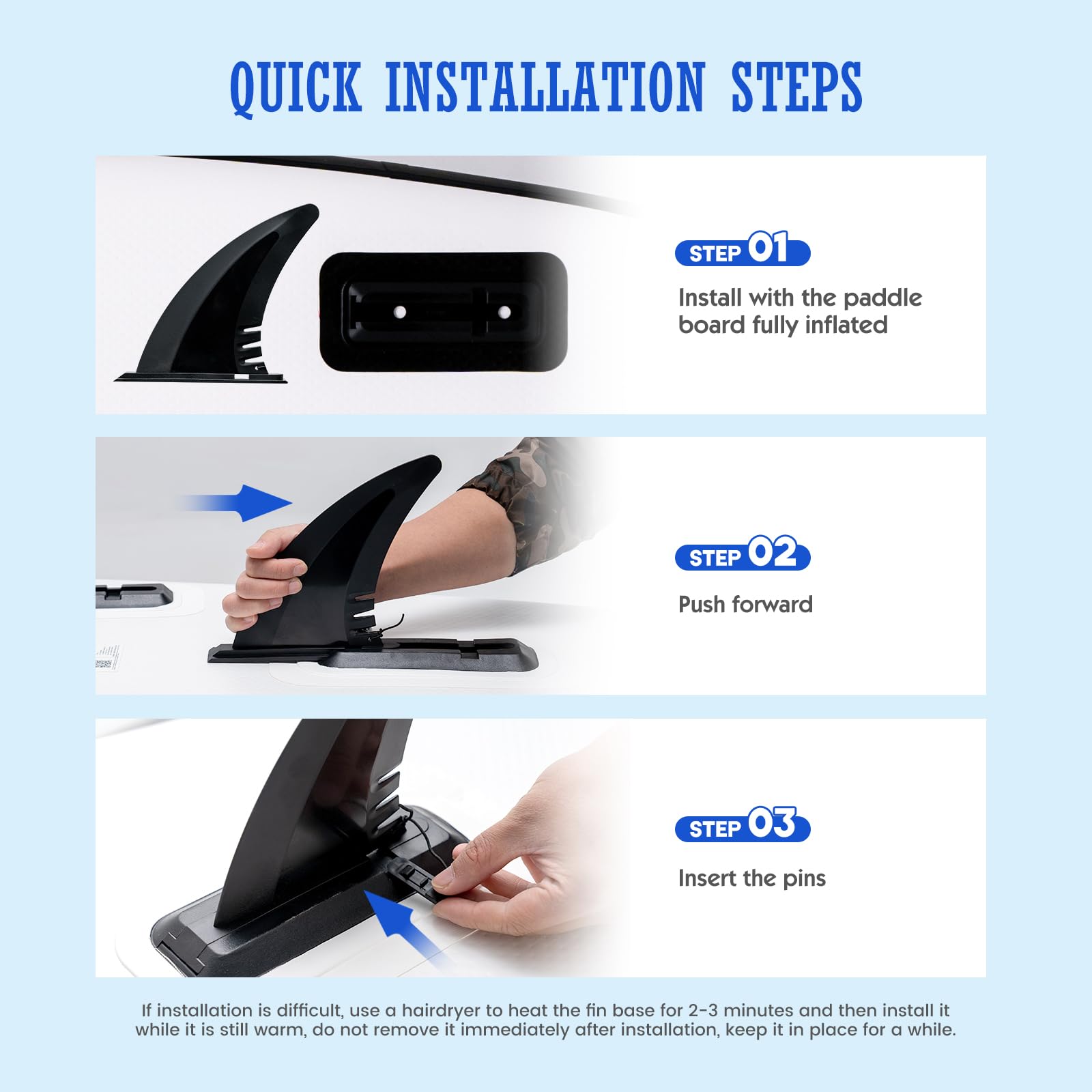 • 【Safety & Convenience】 33'' board width and 3 removable fins construction achieved amazing balance ability.
