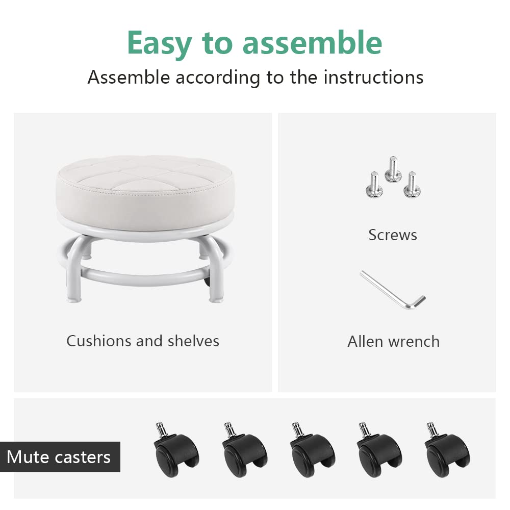 FURWOO Low Roller Seat PU Leather Rolling Stool Step Stool Mechanic Stool on Wheels for Home Office Garage Shop White