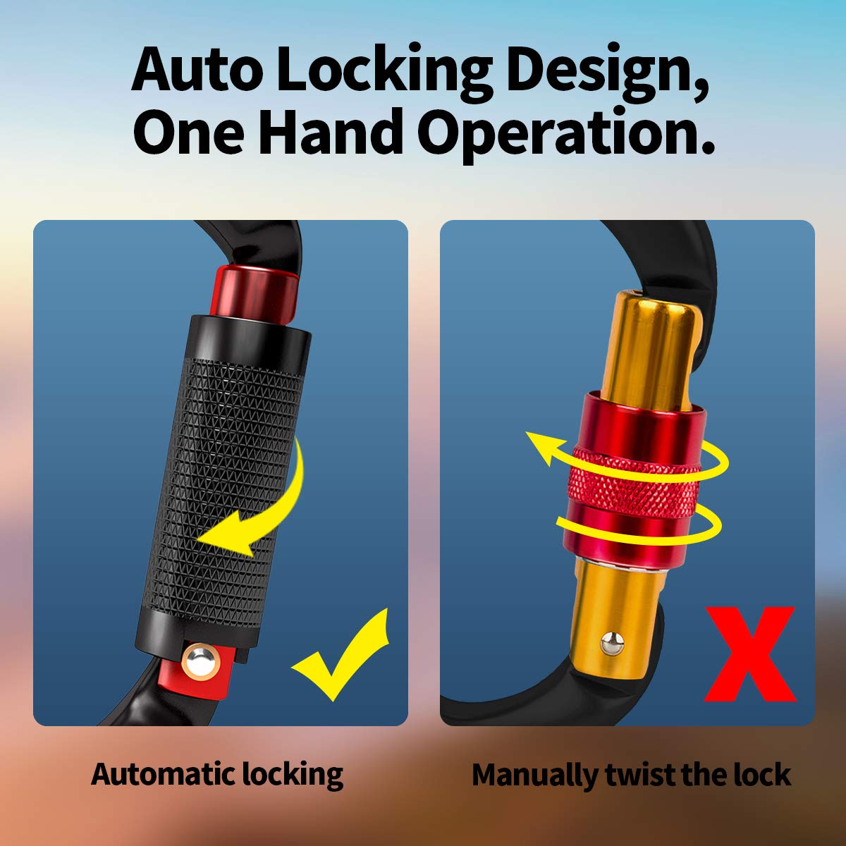 • 【Smooth Screw Locking Carabiners Features】Intimate design with threaded nut on the lock catch, rotate the lock by hand when open and lock, which is delicacy and will not get stuck